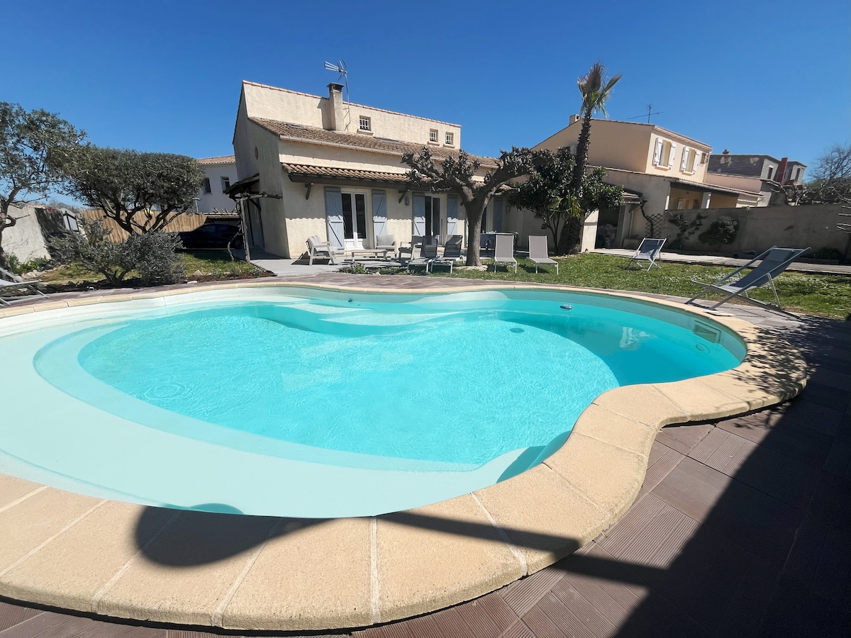 Maison de la Bonaventure Pérols, swimming pool, hardin