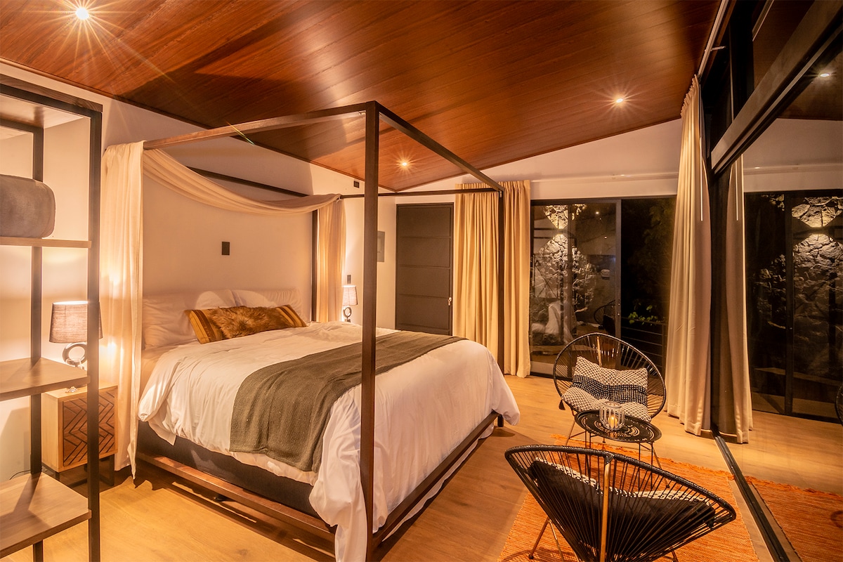 Nag - aalok ang Inspire Costa Rica sa mga bisita nito ng magandang tanawin na may kasamang king bed, uri ng studio na may pribadong banyo. Idinisenyo ito para sa isang natatanging karanasan sa lugar, na may mga modernong pagtatapos. Ito ay isang 100% self - sufficient na proyekto. Mayroon itong mga likas na pananaw at ginagarantiyahan nito ang kabuuang inspirasyon sa pakikipag - ugnayan sa kalikasan. Ang lugar ay may maraming mga lugar ng turista upang bisitahin at maaari kang magkaroon ng isang agro - tourist na karanasan sa lokasyon.