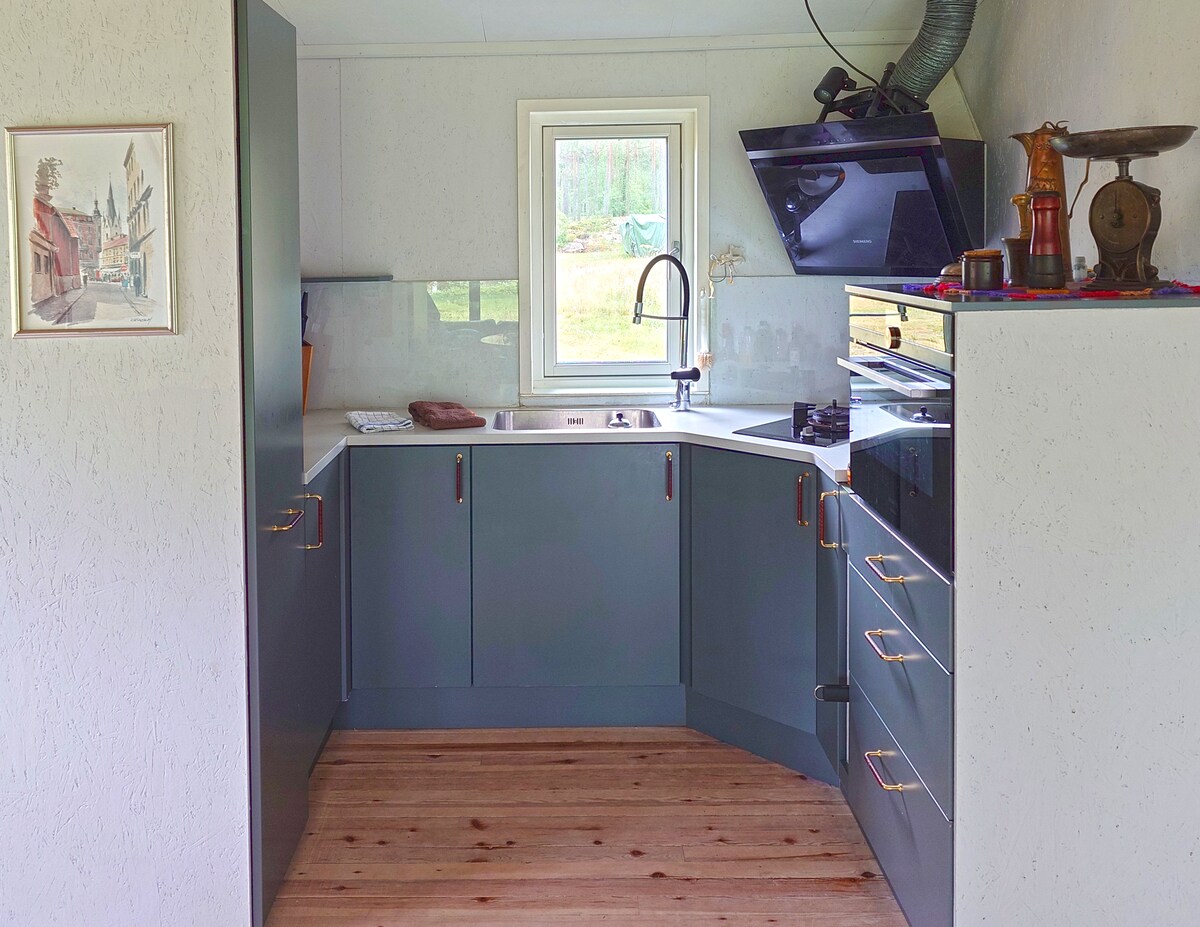 Welcome to our beautiful house in the countryside, with no next-door neighbors except the forest. A short walk takes you to a quiet lake and a lovely sea inlet, for swimming, or just unwinding by the water. The house has all modern comforts, an open floor plan, and big windows that bring the outdoors in. There’s also a private sauna. Especially great for families - there are toys, trampoline, swings, a highchair, and a baby bed to make your stay easy and fun. Enjoy the peace and quiet!