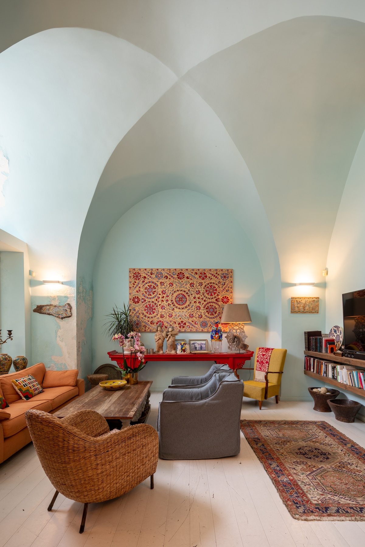 Bahay kung saan matatanaw ang dagat at ang mga nakakabighaning at nakakaintriga na rooftop ng Jaffa. libreng paradahan. Nasa tahimik na kalye na napapalibutan ng mga restawran at mahiwagang promenade. Ang bahay ay pinalamutian ng libre at masarap na kapaligiran at nagdudulot ng mga kulay ng dagat, hangin at karakter ng Jaffa. Walking distance mula sa Flea Market, Jaffa port, Old Jaffa alleys at artisan gallery. Maginhawang pampublikong transportasyon. Ang Jaffa ay isang hindi mapaghihiwalay na bahagi ng Tel Aviv. Sa tuktok na palapag ang sala, kusina at balkonahe sa tabi ng dagat Sa ibabang palapag, may maluwang na silid - tulugan na may ensuite na banyo at isa pang kuwartong may komportableng double bed. Pagkatapos ng isang araw ng hiking, matutuwa kang bumalik sa mahiwagang bahay at panoorin ang paglubog ng araw mula sa balkonahe ng sala 🔆