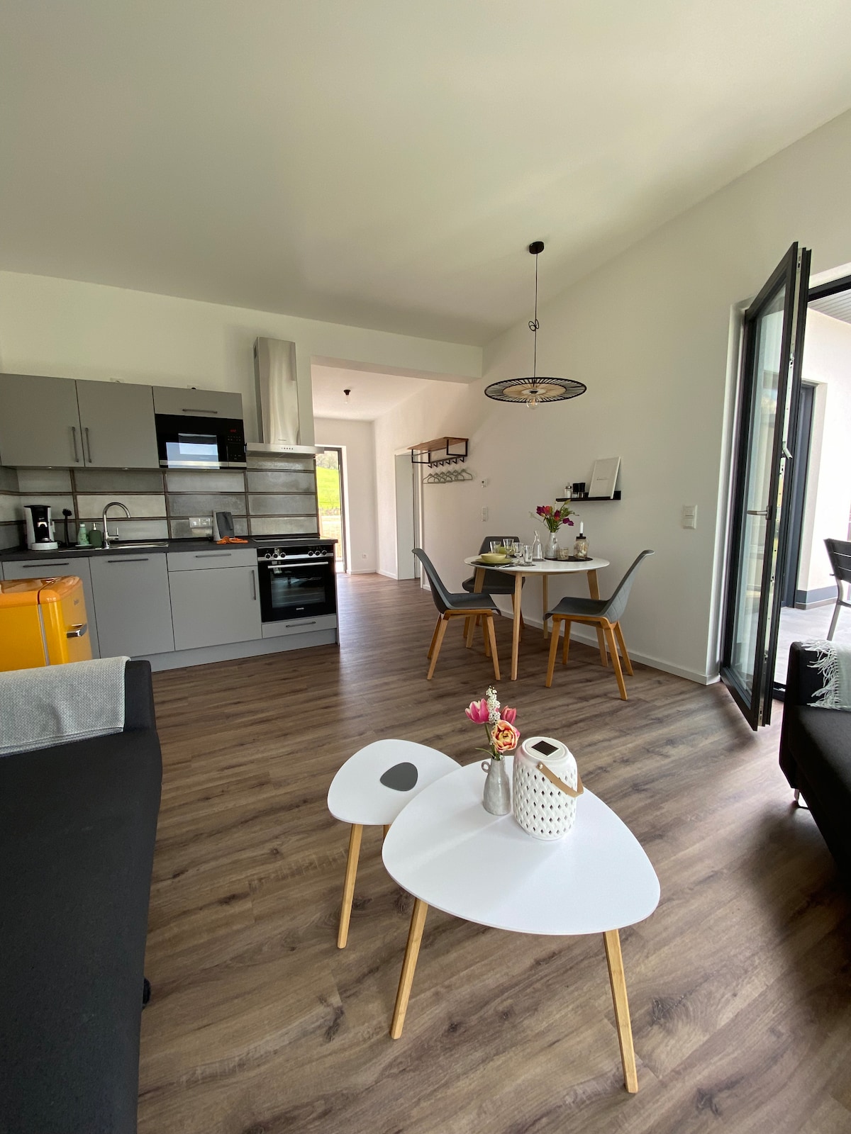 Ang aming maganda at sun - drenched na bahay - bakasyunan ay itinayo sa kahoy at nag - aalok ng lahat ng kailangan ng pamilya o maliit na grupo ng pagbibiyahe. Pansin: Para lang sa mga hindi naninigarilyo sa loob at labas! Isang kusinang kumpleto sa kagamitan, apat na maluluwag na kuwarto, 2 banyo, 2 maaraw na terrace, malaking hardin at double carport. Ang bahay ay may underfloor heating at ganap na walang hadlang, kabilang ang mga shower.