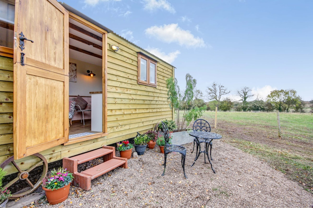 Magmamaneho ka sa tahimik na kalsada ng bansa, paakyat sa track ng bukid at darating sa Top House Farm kung saan naghihintay ang iyong Shepherds Hut, Hot Tub at BBQ Hut. Naglalaman ang kamakailang na - upgrade na Shepherds Hut ng king - sized na higaan, Kitchenette, Dining Area at En - suite Shower Room. Ang Hot Tub ay handa na para sa iyo sa pagdating at ang BBQ Hut ay ang pinakamahusay na lugar upang manirahan para sa gabi sa paligid ng apoy.