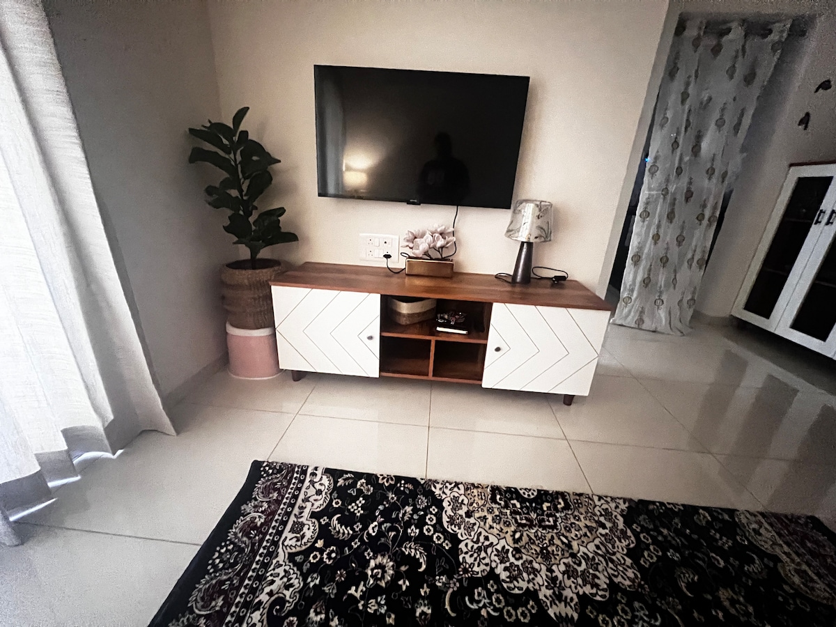 Gumising sa mga nakamamanghang tanawin ng pagsikat ng araw sa The Cozy Cove, isang tahimik na retreat sa Blue Ridge Township ng Pune. Nagtatampok ang moderno at kumpletong apartment na ito ng komportableng sofa cum bed, komportableng kuwarto na may mga malambot na linen, at mga eleganteng interior na idinisenyo para sa kaginhawaan at estilo. Masiyahan sa Netflix at magpalamig ng mga gabi sa smart TV, isang tahimik na pag - set up ng balkonahe, at isang makinis na modular na kusina na nilagyan para sa lahat ng iyong mga pangangailangan. Perpekto para sa mga mag - asawa o maliliit na pamilya, ito ay isang mapayapang bakasyunan na may lahat ng kaginhawaan ng tahanan.