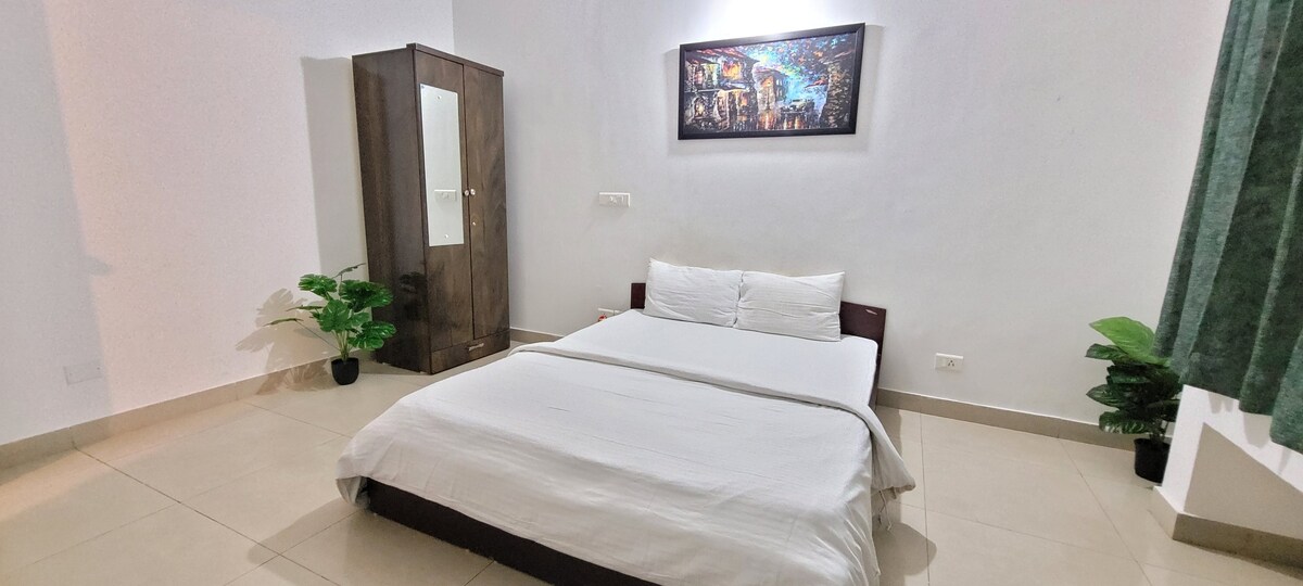 WiFi Enabled Bedroom-Hall-Kitchen all Furnished with AC in all rooms & a Breathking View, we guarantee peaceful holiday at our heavenly Adobe. Serendipity, Solace, Surprise is what our home would leave you with Love and lot of care with which we have designed our place will leave you spellbound Apartment is designed for a comfortable stay & comes with 2 televisions a 55 inch in the living & a 43 inch at Bedroom. Moreover we have a Private Jacuzzi in the shower area.