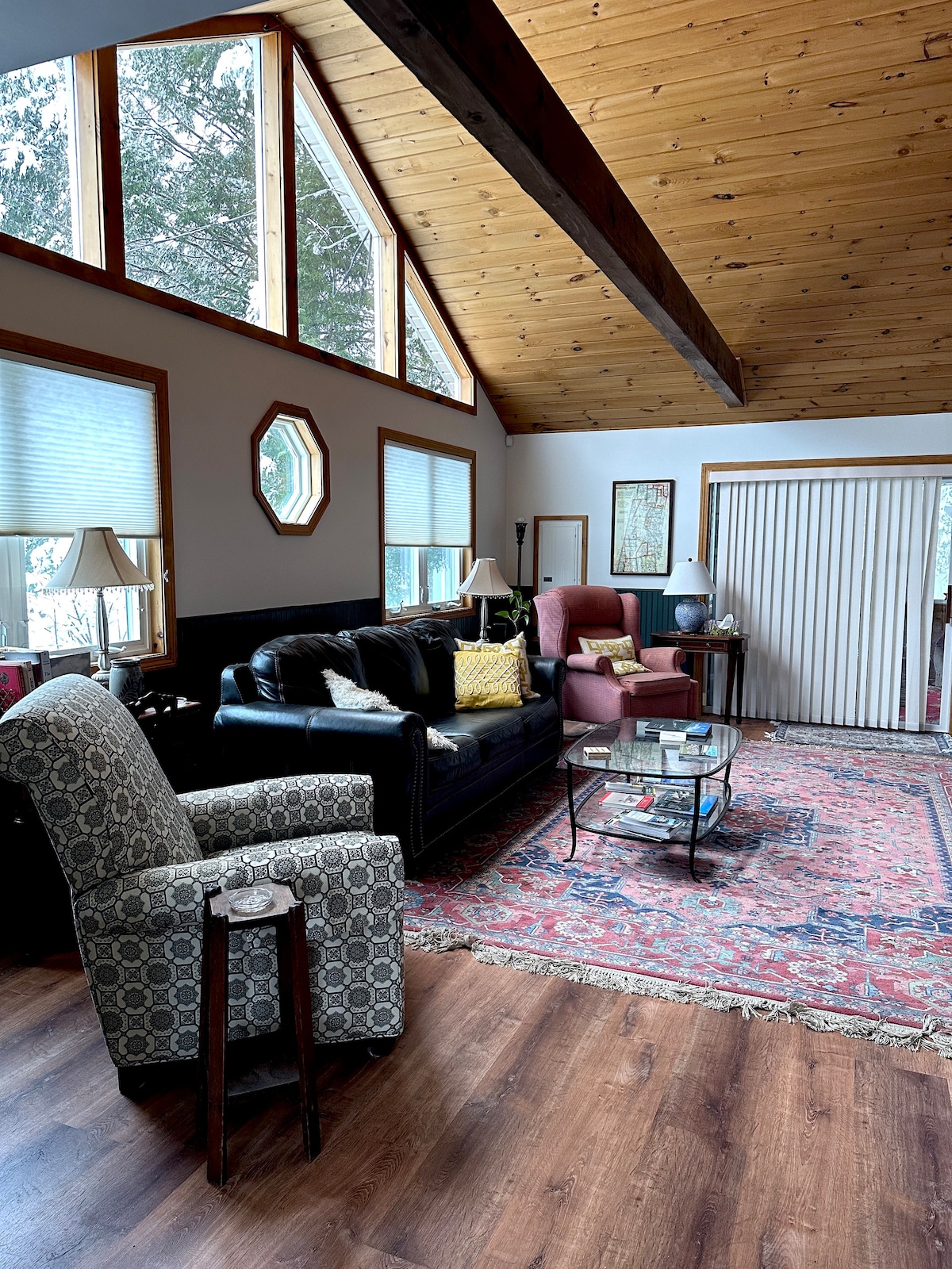 Ang pinakalumang bahay sa bayan, ganap na naayos. Magandang sala na may dalawang palapag na may malabay at pribadong back deck para sa mga pagkain sa labas. Kusina na may mga counter ng bato, gas cook top, at dishwasher; dalawang banyo na may mainit na sahig. Ang mga floorboard sa itaas ay may lapad na paa; queen size bed na may tanawin sa ibabaw ng mga puno, sapa at beranda.