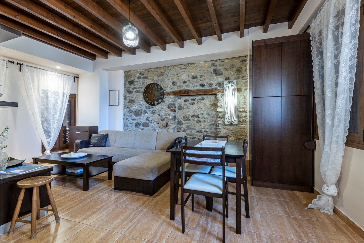 Bumalik sa nakaraan habang tinatangkilik ang mga modernong kaginhawaan sa kaakit - akit na bahay na bato na ito, na orihinal na itinayo sa 1886 at na - renovate sa 2024. Napapalibutan ng 1 ektarya ng mga puno ng oliba, na may malawak na hardin, nag - aalok ang property na ito ng isang timpla ng kagandahan sa kanayunan at modernong kaginhawaan, na ginagawang mainam para sa mga mag - asawa, pamilya, at solong biyahero , na naghahanap ng kapayapaan at likas na kagandahan. Matatagpuan malapit sa sentro (15 minutong lakad mula sa Marina port) , ang bahay ay sapat na malapit para sa kaginhawaan ngunit sapat na para sa katahimikan.