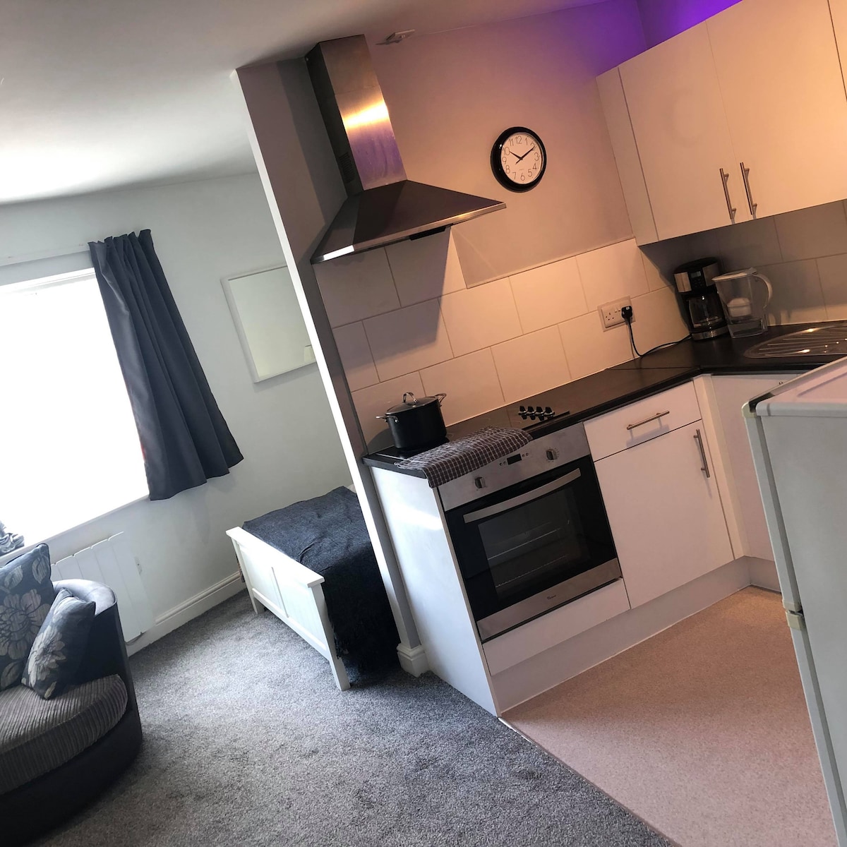 Isang komportable, maaliwalas at mainit - init, bago sa merkado na maganda ang pagkakagawa ng smart studio apartment sa gitna ng bayan ng Stafford ng county sa maigsing distansya ng magagandang restawran, pub, at club. Isang lakad lang ang layo ng main line station. Alton Towers, Drayton Manor, Go ape, Cannock Chase at lahat ng mga kaganapan sa Stafford Showground na madaling maabot.