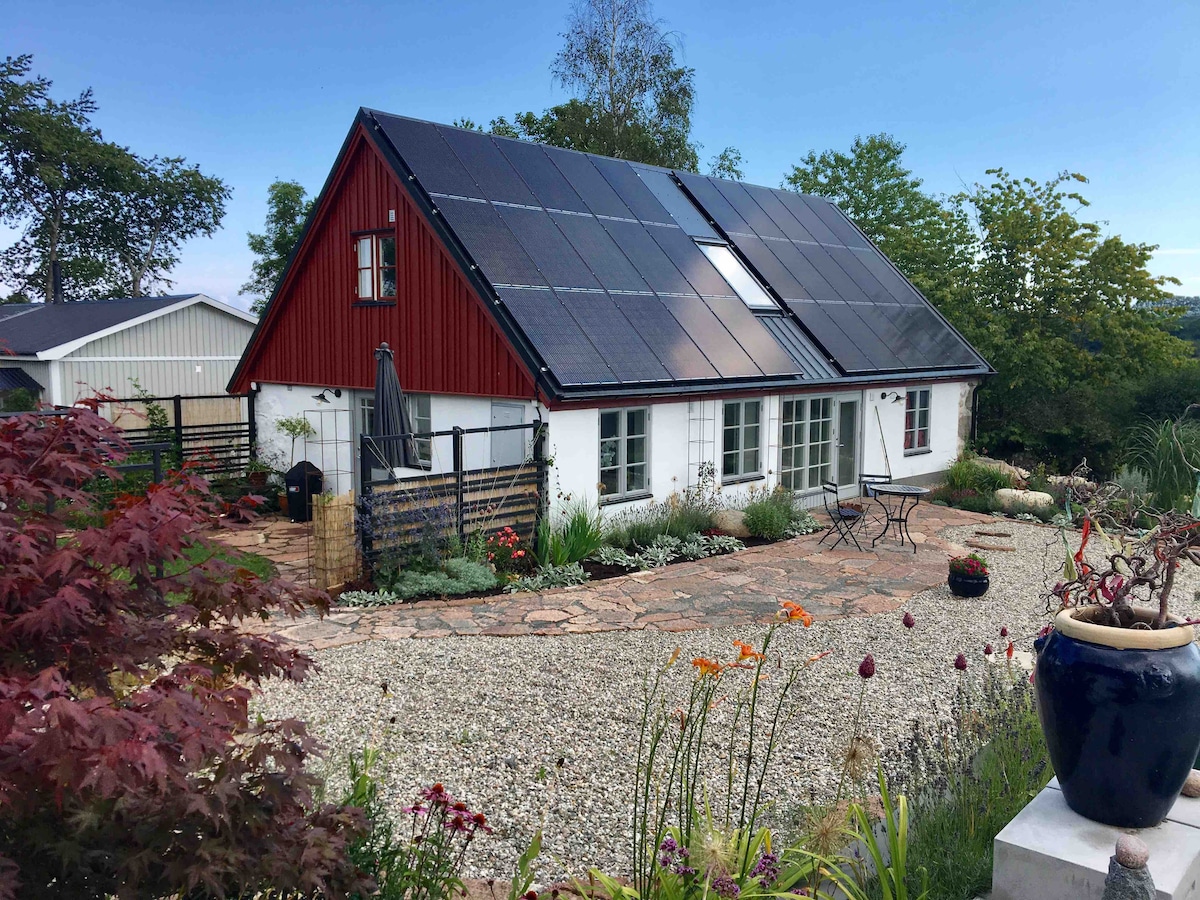 Tangkilikin ang magandang Österlen sa Ekohuset sa Ekorrbo. Dito ka nakatira nang paisa - isa at pribadong protektado, na napapalibutan ng mga puno at tinatanaw ang lumiligid na kanayunan ng Skåne sa timog ng Rörum. Family - friendly na accommodation na may double bed sa sleeping alcove at apat na kama sa maluwag na sleeping loft. Buksan sa nock sa ibabaw ng kusina at sala. Ganap na naka - tile na banyo na may underfloor heating at washer/dryer. Dishwasher. Distansya: Simrishamn 14 km Kivik 9 km Ystad 31 km Malmö 76 Km Knäbäckshusens strand 6 km Mga hardin ng Mandelmann, 4 km