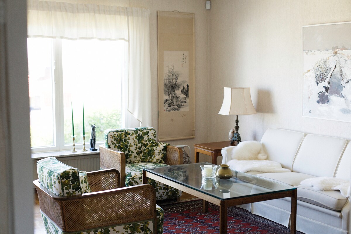 Welcome sa maluwag na apartment na humigit‑kumulang 80 sqm na nasa ibabang palapag ng bahay sa ilalim ng lupa sa kaakit‑akit na Kivik. Makakapamalagi ka rito nang komportable malapit sa kalikasan, daungan, mga restawran, sentro ng lungsod, at magandang mabuhanging beach—lahat ay nasa loob ng 5–20 minutong lakad. Sa loob ng 3 minutong paglalakad, makakahanap ka ng isang berdeng lugar na may pine at deciduous forest. Narito ang kalikasan at tahimik na mga landas na humahantong sa mga puno ng mansanas, mga ubasan ng Vinbaren 2:9, at ang Pamilihan – Isang kaakit‑akit na kombinasyon ng kalikasan at mga lokal na karanasan.