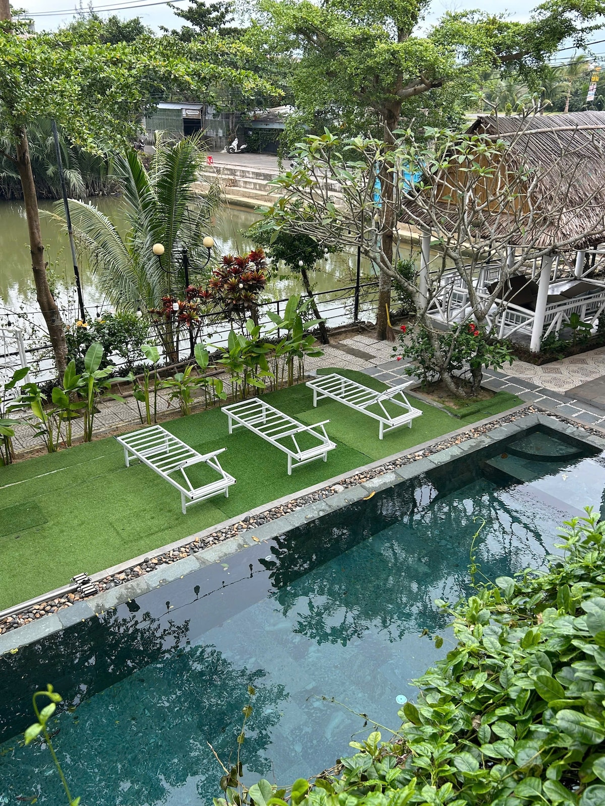 The villa is located inside Hoa Phu Thanh park, a park famous to the youngs for the first white water rafting course in Vietnam. The villa has 2 separate floors, this is the first floor of the villa, which contains 2 master room, a fully equipped living room and kitchen. Outdoor area is super large, with shared swimming pools, outdoor BBQ area, a fish spa, a nature lake and stream, which are free. The park also provide other activities such as zipline, archery and the water rafting daily.