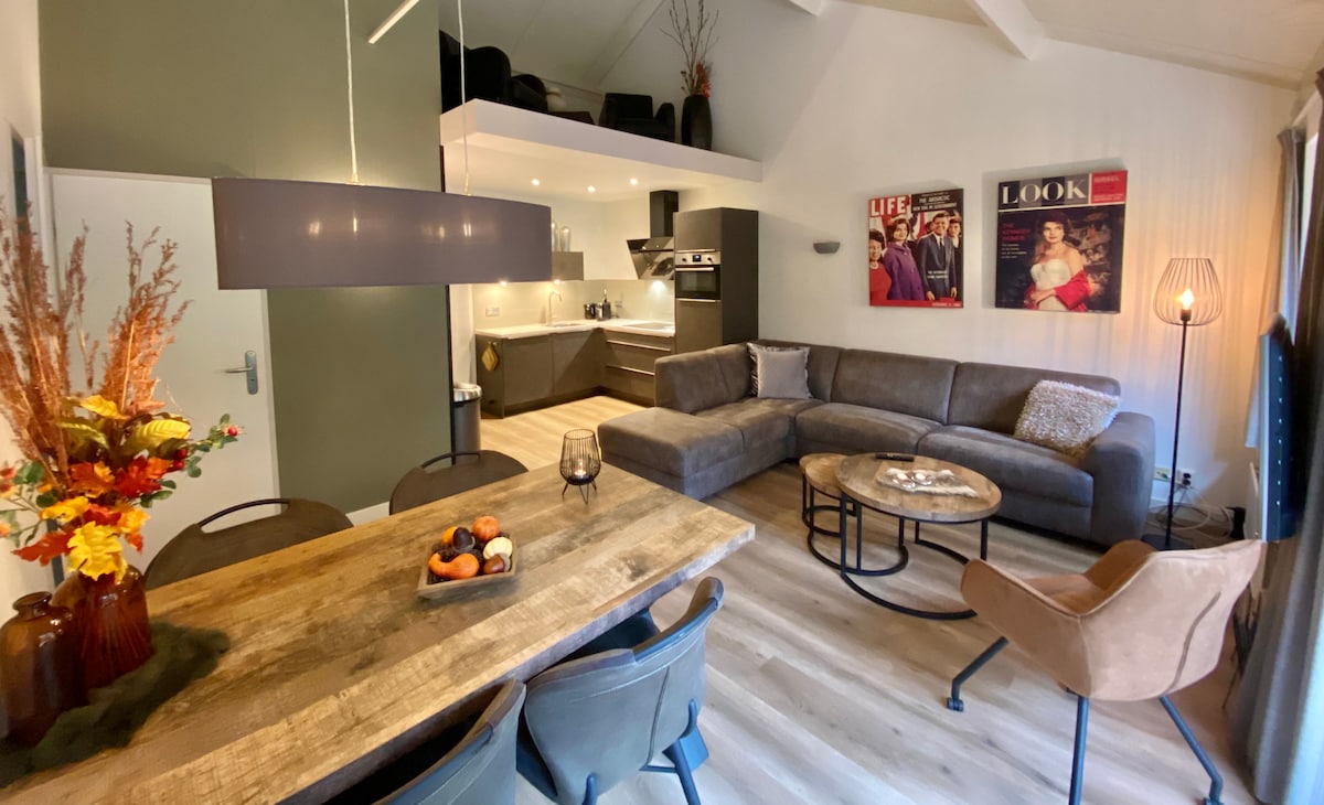 Magandang kumpletong bahay sa bungalow park na "De Goudsberg". Napakahalaga ng kaginhawaan sa pagtulog: mararangyang king - size box spring bed na may topper (1 espesyal para sa matataas na tao: 1.80 x 2.10 metro) at iba 't ibang unan at kumot na mapagpipilian mo. May isang bagay para sa lahat! Gamitin ang kalan na kahoy (siyempre may C.V. din), kumuha ng magasin sa lalagyan ng babasahin, at mag‑relax lang. Inihanda ang mga higaan at may mga bath towel at tea towel