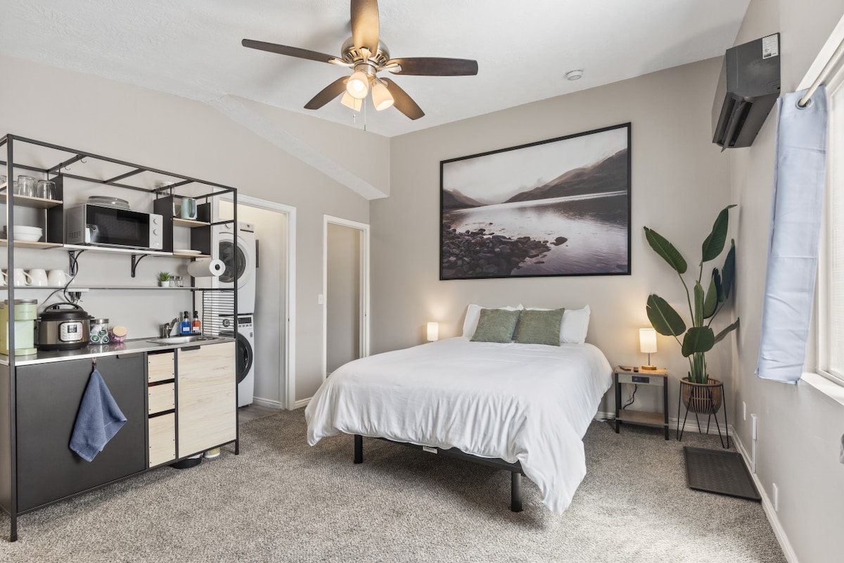Kailangan mo ba ng lugar para makapagpahinga, makapag - reset, at makapagpahinga? Ang guest suite na ito na may queen size na higaan ay isang perpektong lugar para gawin ang lahat ng tatlo! Bagong itinayo at nasa gitna, ang suite na ito ay isang maikling biyahe mula sa downtown o skiing at mga paglalakbay na nakabatay sa bundok. Ayaw mo bang lumabas? Suwerte ka dahil may lahat ng kailangan mo sa loob ng unit na ito. Kasama namin ang isang ganap na stocked Keurig coffee maker, mga inumin + treat, isang ice maker, isang mini refrigerator at kahit na isang istasyon ng trabaho upang maaari kang magtrabaho nang malayuan. WALANG PINAPAHINTULUTANG HAYOP