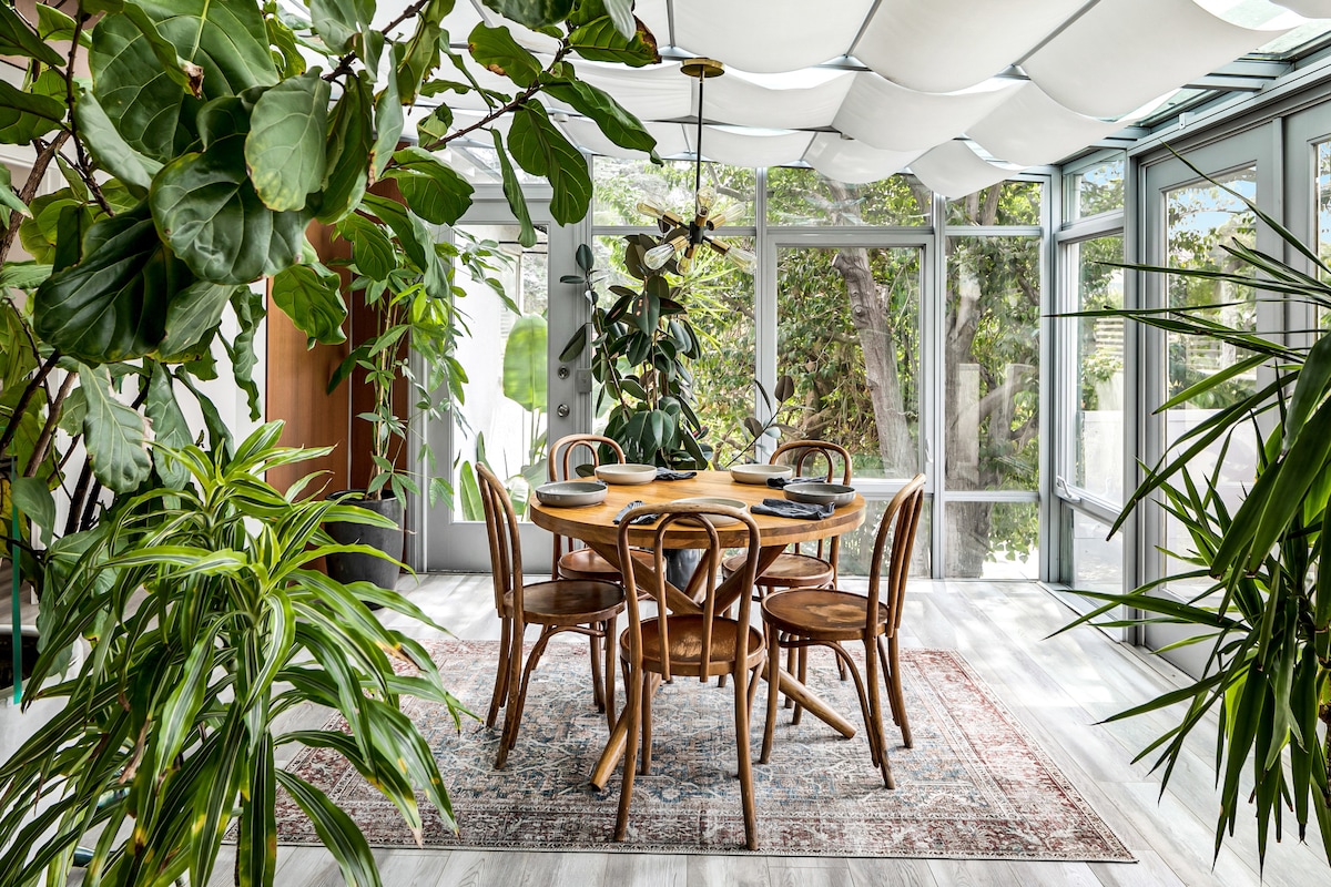 Maingat na idinisenyo, puno ng liwanag, isang silid - tulugan, isang paliguan, libreng nakatayo na guest house na matatagpuan sa makasaysayang Whitley Heights ng Hollywood. Maginhawang matatagpuan na may 10 -15 minutong lakad papunta sa Hollywood Bowl, Hollywood Walk of Fame, mga restawran, bar, coffee shop at hiking trail. 5 -10 minutong biyahe ang Universal Studios. Ang arkitekturang Spanish - Mediterranean Revival, mga sahig na bato, mga bintana ng casement, gas fireplace, modernong muwebles sa kalagitnaan ng siglo at orihinal na likhang sining ay ginagawang natatanging karanasan ang property na ito.