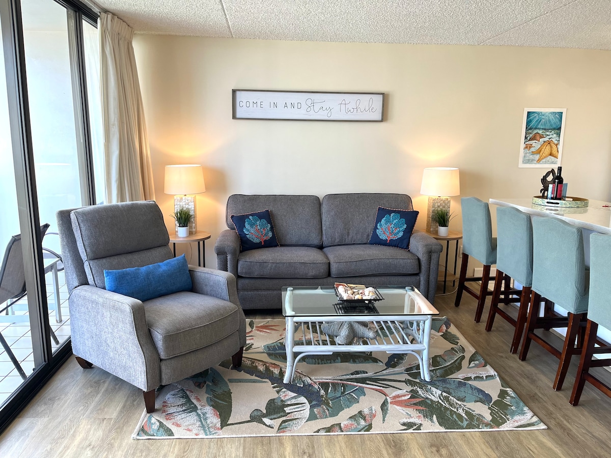 Gumising sa mga nakamamanghang tanawin ng karagatan mula sa aming bagong ayos na 1Br, 1BA condo. Mamahinga sa lanai, hayaan ang mga banayad na breeze, at magbabad sa kaakit - akit na kapaligiran. May sapat na espasyo para sa hanggang 4 na bisita, perpekto ang bakasyunang ito para sa mga mag - asawa, maliliit na pamilya, o malalapit na kaibigan na naghahanap ng aliw at katahimikan. Isawsaw ang iyong sarili sa kalmadong kapaligiran ng mga modernong kasangkapan at isang nakapapawing pagod na paleta ng kulay. May kasamang maginhawang paradahan. Tuklasin ang isang napakagandang santuwaryo kung saan magkakasundo ang katahimikan at pagpapahinga.