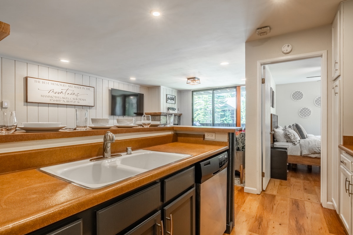 Ang aming Alagang Hayop Friendly (1 aso maximum, paumanhin walang pusa)1 BR Condo ay nasa isang Great Location hakbang ang layo mula sa mga restaurant, entertainment, shopping at ang libreng Town of Mammoth Lakes shuttle. Na - update namin kamakailan ang kusina, banyo at mga sala. Ang Mammoth ay ang premiere ski resort para sa lahat ng sports sa taglamig. Napakaganda ng mga tag - init na may perpektong panahon, hiking, at pangingisda, at nagbibigay kami ng pangingisda para magamit mo. Perpekto ang panahon na may maiinit na araw at malalamig na gabi.