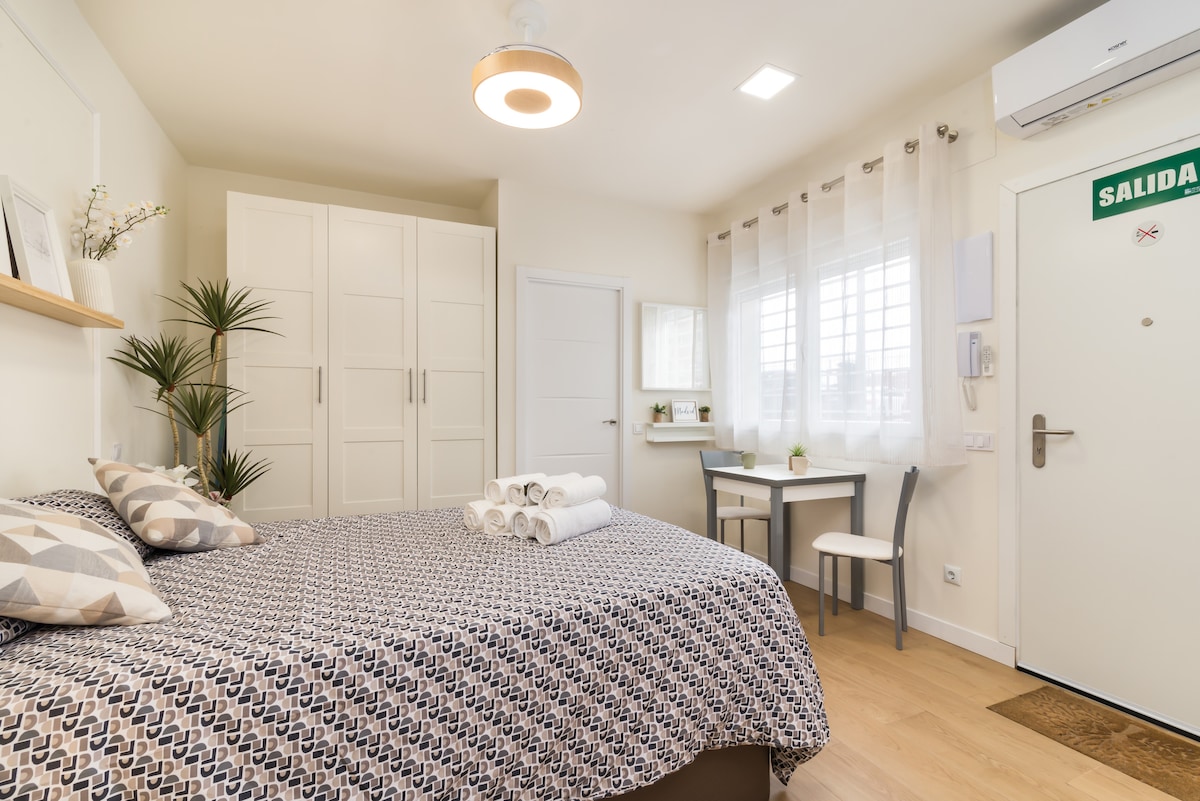 Nag - aalok ang Stayswift ng magandang studio premier na ito sa kapitbahayan ng Pinar del Rey. Silid - tulugan at sala na may sofa bed sa iisang lugar. Napaka - komportableng high - end na kutson sa magkabilang higaan. Mainam para sa dalawang tao dahil sa laki nito (28m2) pero handang tumanggap ng 4 na tao. Kumpletong kusina at lahat ng uri ng detalye. Awtonomong sistema ng pag - check in anumang oras!! Ilang minutong lakad mula sa Pinar del Rey metro stop (linya 8). Mula roon, puwede kang pumunta sa paliparan, IFEMA, o sa downtown.