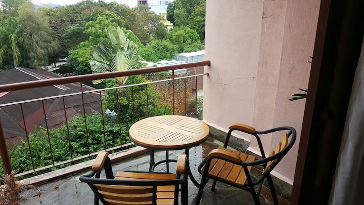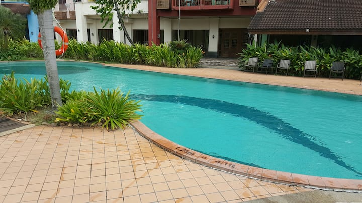 Ang studio apartment suite na ito ay maginhawa at kaaya-aya. Mayroon itong komportableng higaan, microwave oven, refrigerator, TV, atbp. Mayroon itong lahat ng kaginhawa ng isang tahanan na malayo sa bahay ngunit may ilang mga karagdagan. May pribadong beach, swimming pool, at ilang pangunahing pasilidad ang Langkawi Lagoon Resort. Pinakamahalaga sa amin ang pagbibigay ng pinakamahusay na karanasan sa tuluyan namin. Gayunpaman, unti-unting inaayos ang mga pasilidad at gusali at nakaiskedyul na matapos ito sa takdang panahon. Mahal namin ang lugar na ito dahil nag‑aalok ito ng katahimikan at kapayapaang hinahanap‑hanap ng marami kapag nagbabakasyon.