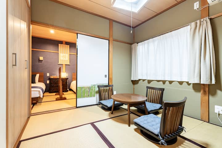 Suite malapit sa Nijo Castle, Superhost, 3 kuwarto, pribadong banyo at palikuran, hanggang 5 tao, 1 minuto mula sa hintuan ng bus, convenience store, supermarket at restaurant