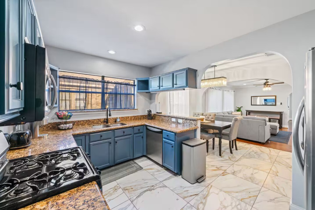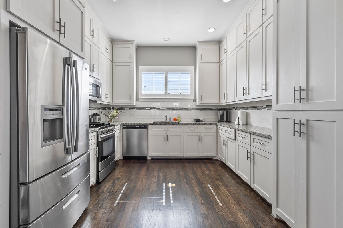 Hindi mo malilimutan ang iyong pamamalagi sa kontemporaryong tuluyang ito na nagtatampok ng gourmet na kusina, silid - tulugan na may pribadong en - suite, at maraming natural na liwanag. Maglakad papunta sa pribadong bakuran mula sa kuwarto o kusina para kumain sa outdoor dining area o uminom sa paligid ng fire pit. Pagkatapos, pumasok sa maluwang at hotel lounge - tulad ng magandang kuwarto para manood ng Netflix sa 75" TV. Kasama sa laundry room ang bagong washer, dryer, at lababo na may mataas na kapasidad. Madaling ma - access ang saklaw na paradahan.