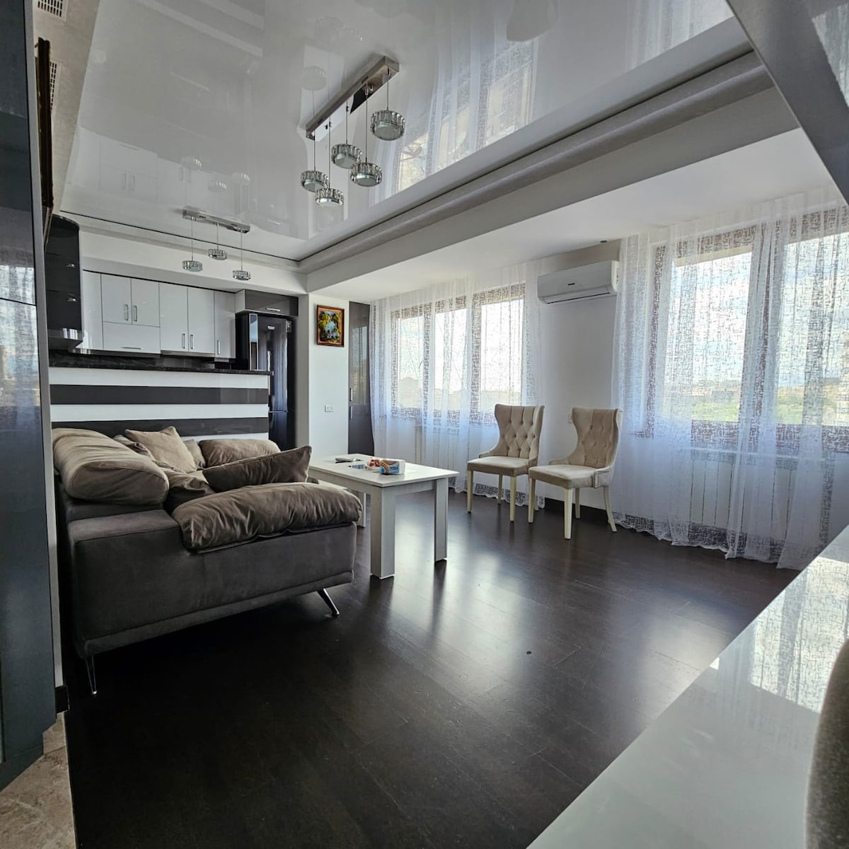 Maligayang pagdating sa aming naka - istilong at komportableng apartment na matatagpuan sa isa sa mga pinakaprestihiyosong tulugan sa lungsod. Ang apartment ay perpekto para sa mga pamilya at turista na naghahanap ng kaginhawaan, kaginhawaan at maginhawang lokasyon na malapit sa mga pangunahing atraksyon. Idinisenyo ang tuluyan sa eleganteng modernong estilo gamit ang mga de - kalidad na materyales at pinag - isipang solusyon sa disenyo. Ang balkonahe ay may kaakit - akit na tanawin ng nakapalibot na lugar kung saan maaari mong tamasahin ang iyong umaga ng kape o paglubog ng araw.