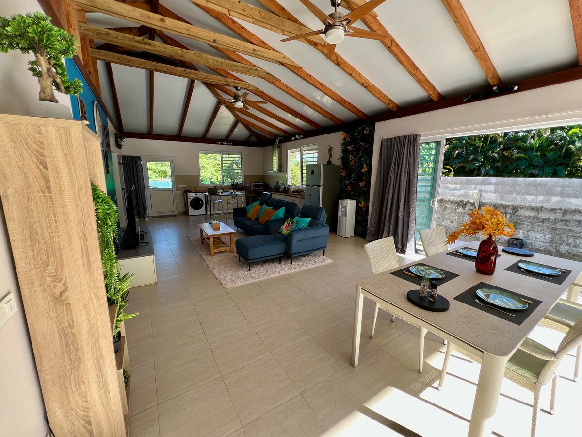 Sa kalmado ng baybayin ng Tetahora 8 km mula sa Fare (11min drive at 1h39 walk), napakahusay na kamakailang bahay na 70m2, sa Vainanue Lodge, Western standard, mga tanawin ng baybayin, lagoon nito at bundok, air conditioning at mga lambat ng lamok. Nilagyan ng isang silid - tulugan pati na rin ang isang living - dining room at isang kusinang kumpleto sa kagamitan. May 1 higaan na 180x200, 2 x 90x190 na higaan, puwedeng tumanggap ang bahay ng hanggang 4 na tao. Posibilidad na tulungan kang magrenta ng kotse sa site.