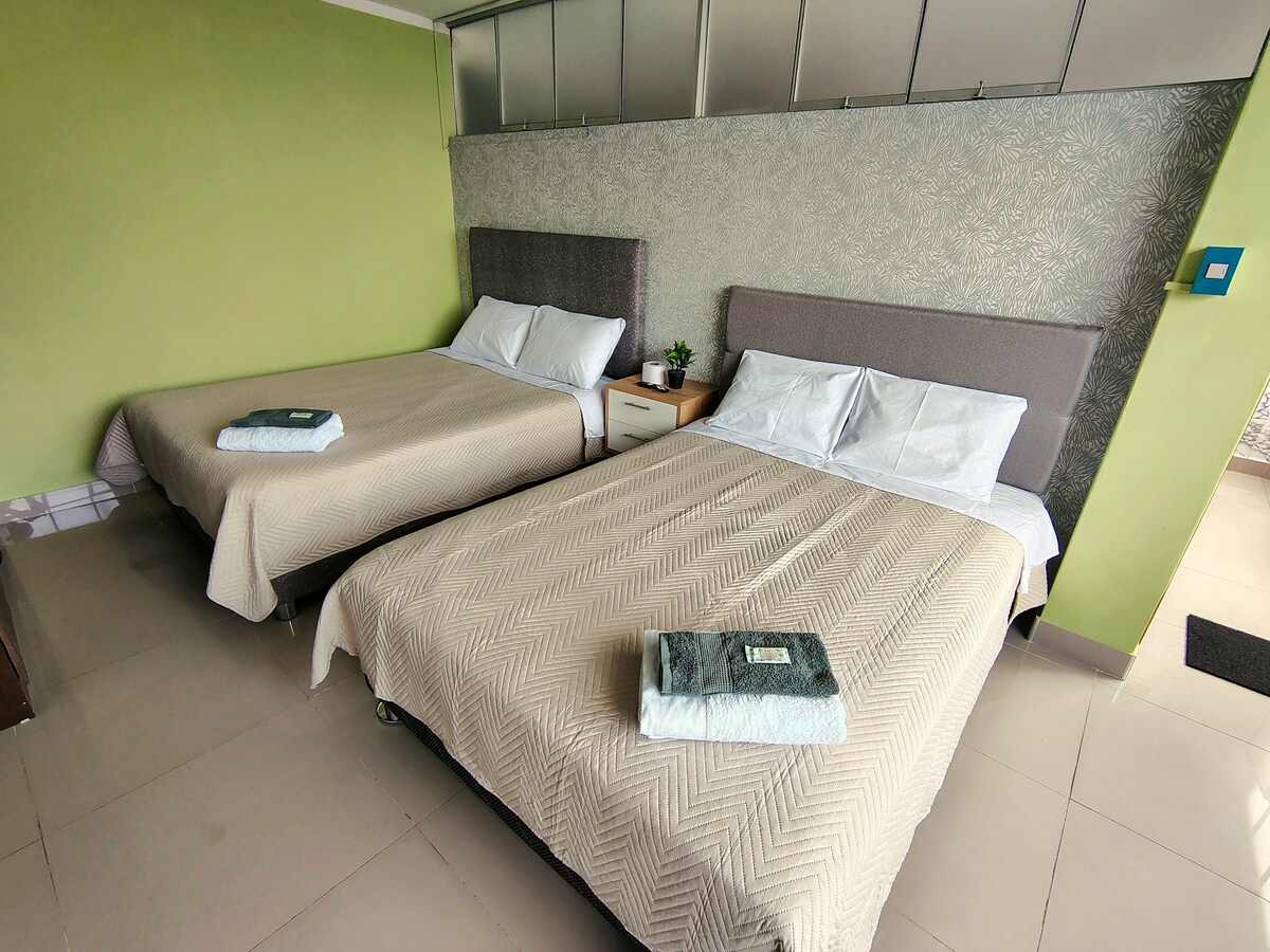 Maligayang pagdating sa aming komportableng apartment na matatagpuan sa gitna ng Amarilis, Huánuco — isang lugar na idinisenyo lalo na para sa mga pamilya o grupo ng mga kaibigan na gusto ng kaginhawaan, katahimikan at pagiging malapit sa lahat. Matatagpuan ang tuluyang ito sa ikatlong palapag ng tahimik na gusali, na may mga bintana na nakaharap sa pangunahing parke, na nagpapahintulot sa iyo na tamasahin ang natural na liwanag at ligtas na kapaligiran.
