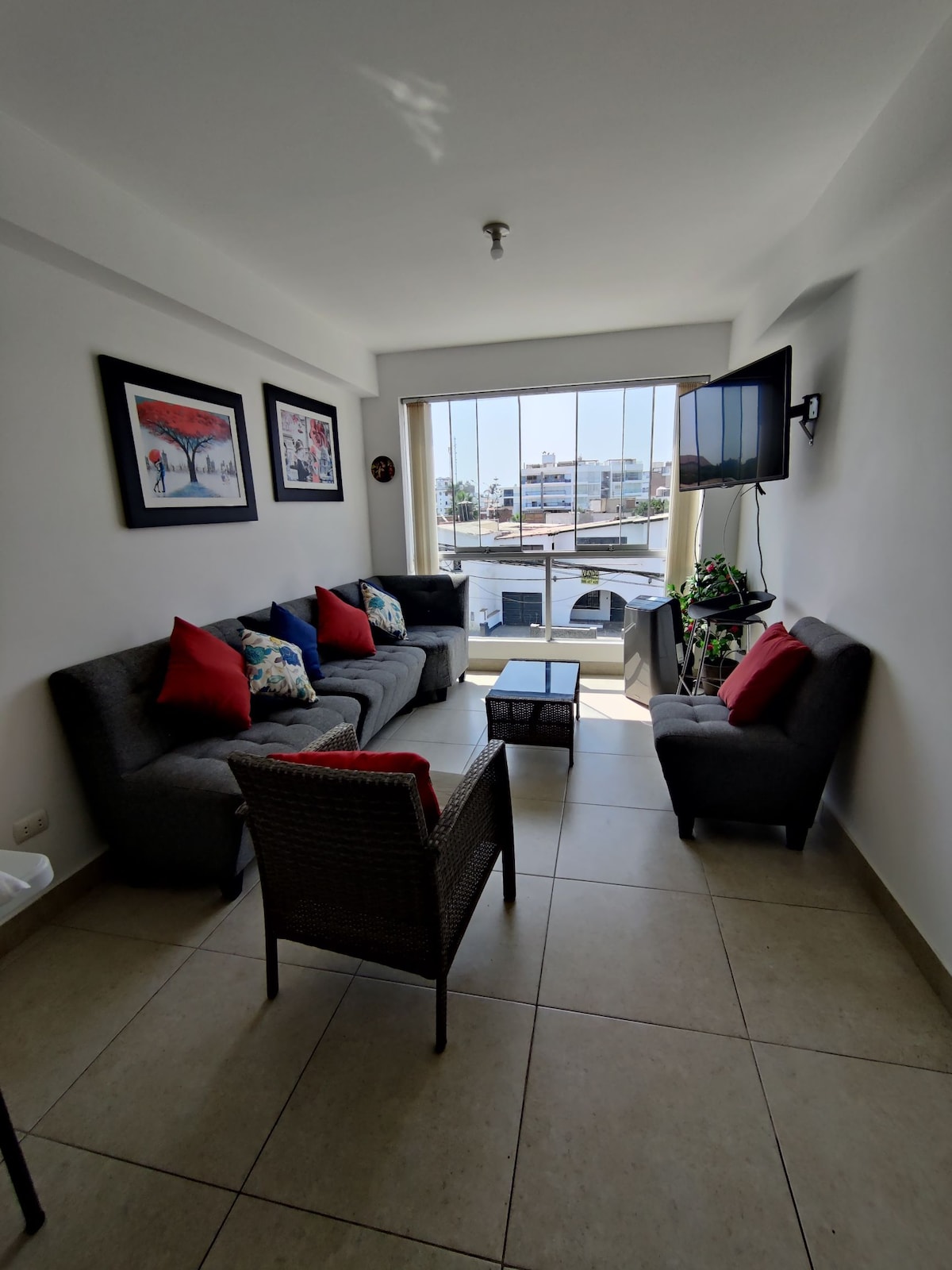 ang apartment 4 piso , ay isang tahimik na tuluyan na matatagpuan sa tabi ng boulevard sa pagitan ng Calle Isles Ballestas at Calle Zorritos, lugar ng restawran, convenience store ,merkado atbp. Ang apartment ay may tatlong kuwarto bawat isa ay may pribadong banyo at sa bawat isa sa kanila ay may double square bed din sa isa sa mga kuwarto ay idinagdag ng cabin o bunk bed para sa dalawa pang tao, kabuuang 8 tao. 5 minuto ang layo ng establisimiyentong ito Isang perpektong lugar para magpahinga nang tahimik at nakakarelaks.
