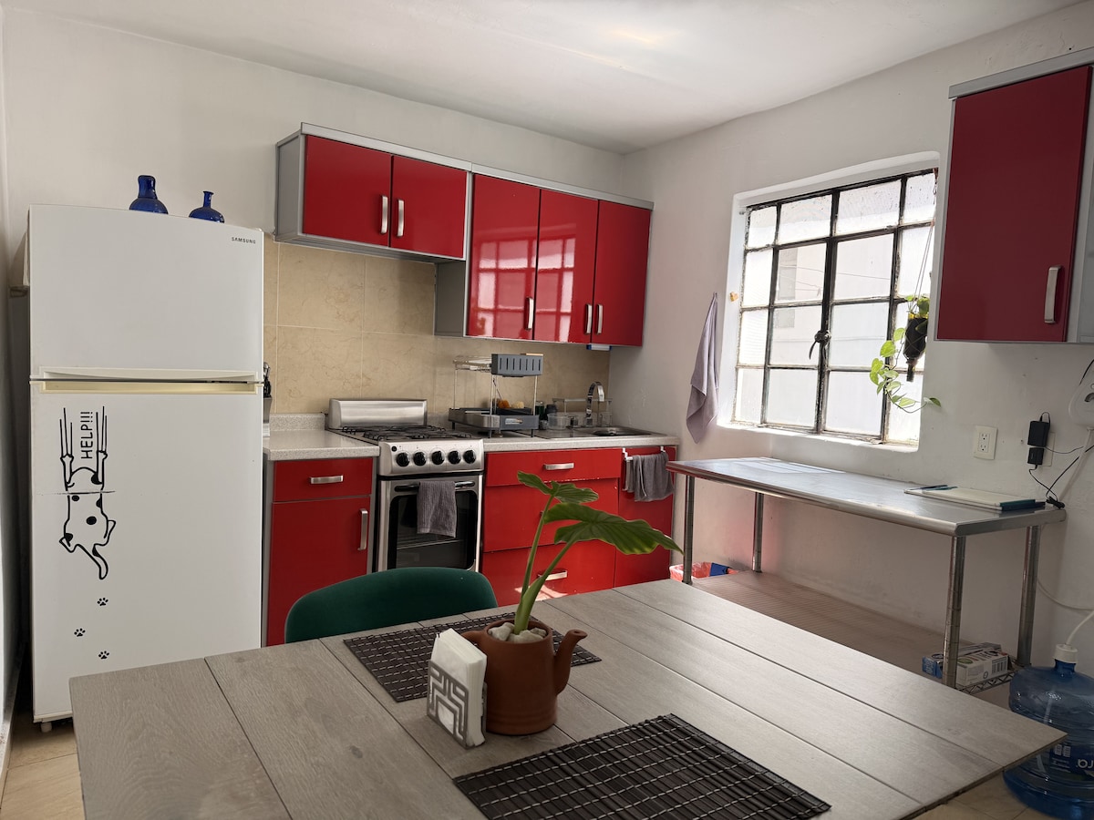 Relájate en este espacio tranquilo y elegante, ideal para pasar unos días de descanso. Con alberca privada climatizada ( 30 a 32 grados), relajante jardín, terraza abierta, cocineta y asador esta completamente equipada. Cuenta con 2 recamaras con un excelente diseño y preparadas para que disfrutes de un descanso placentero, con cama King en la principal y Queen en la segunda recamara ✔ Minisplit en ambas recamaras. ✔ Mini enfriador en recamara principal ✔ Internet en toda la casa de 500 Megas
