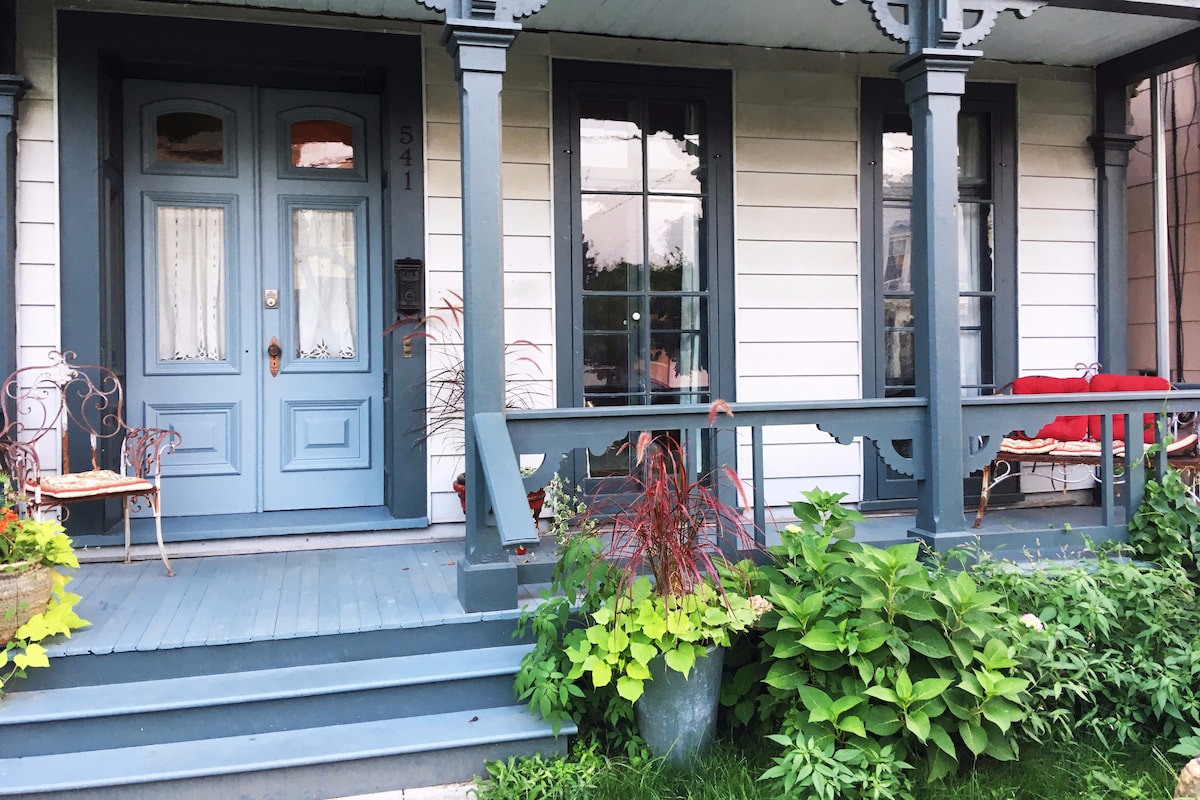 Oasis in midst of downtown Hudson, 2 blocks fr Warren St, short walk fr Amtrak, 1/2 block fr Empire State Trail. Spacious, sunny studio apartment w fenced in yard, park-like setting & private porch to relax, have a meal or watch the world go by. Inside this elegant 1850 home, you’ll find bedroom, living room and work areas, full kitchen w dining table, and a large bathroom w clawfoot tub and a walk in shower. Original architectural details have also been preserved with care. Come, and enjoy!