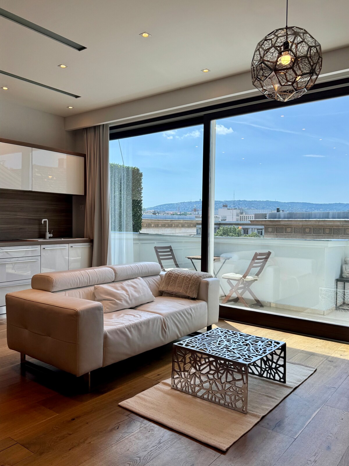 ✨ Nakamamanghang top - floor haven sa puso ng Budapest - perpekto para sa mga mag - asawa, pamilya, o grupo hanggang 4! Nagtatampok ng 4 na metro na balkonahe na may dining set at sun lounger, na nag - aalok ng mga malalawak na tanawin mula sa Buda Castle hanggang sa MÜPA. Ang modernong luxury ay nakakatugon sa pangunahing lokasyon malapit sa VIKING CRUISE dock at Gellért Bath. Ganap na nilagyan ng queen - size na higaan at sofa bed. 🌟