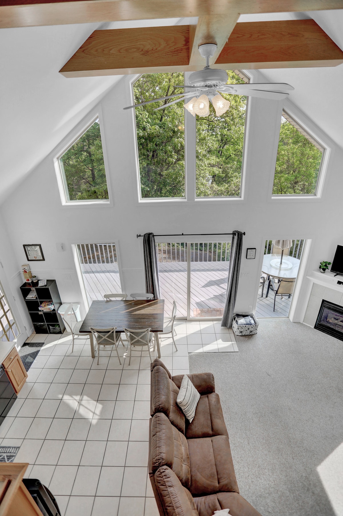 Ang 5 - bedroom chalet na ito ay mataas sa tagaytay kung saan matatanaw ang magandang pribadong lawa at landas sa paglalakad. Malaking pamilya o isang grupo ng mga kaibigan ang bahay na ito ay perpekto upang magkaroon ng iyong sariling espasyo. Ang 1st floor ay may pribadong pasukan, buong kusina, dining area, 2 silid - tulugan na may 2 double queen bunk bed at isang buong banyo. Ang ika -2 palapag ay may pribadong pasukan, buong kusina, dining area, 2 silid - tulugan, isang loft bedroom, at 1 buong banyo. *Hindi nakakonekta sa loob ang ika -1 palapag at ika -2 palapag. Nasa kabilang kalye ang paradahan ng bangka *