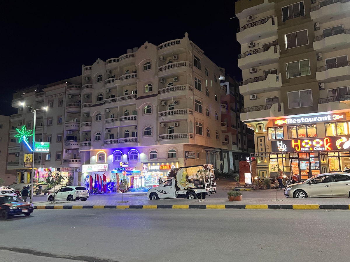 📍 Central Hurghada | Walk to Mamsha | Near Airport Stay in the heart of Hurghada, just 10 minutes from the airport ✈️ and steps away from Mamsha Promenade—one of the city’s most vibrant areas. 📍 Nearby (All Walkable): • 🏖️ Beach 9 – approx. 15-minute walk (entry fee ~ €3/person) • 🏛️ Hurghada Museum – 10 minutes • 🚶 Touristic Promenade – 10 minutes • 🛒 TK Supermarket (24 hrs) – 7 minutes • 🏋️ Gym – 5 minutes • 🍽️ Restaurants, cafés, pubs & ATM – within 10 minutes