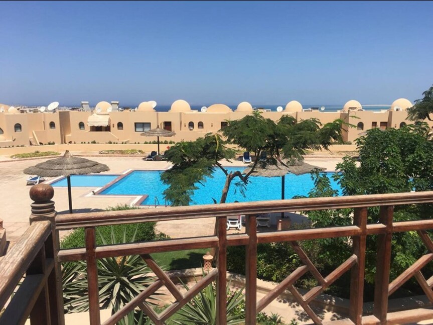 Panatilihin itong simple sa mapayapa at sentrong lugar na ito. Tangkilikin ang iyong paglagi sa Heart of hurgada sa pribadong compound Dau Heights sa lahat ng mga serbisyo na kailangan mo na may tanawin ng dagat at pool (pool, Sequirty, balkonahe, LCD, AC , central satellite, kusinang kumpleto sa kagamitan, washer, pampainit ng tubig, cocker, at hygienic room service, bakal)