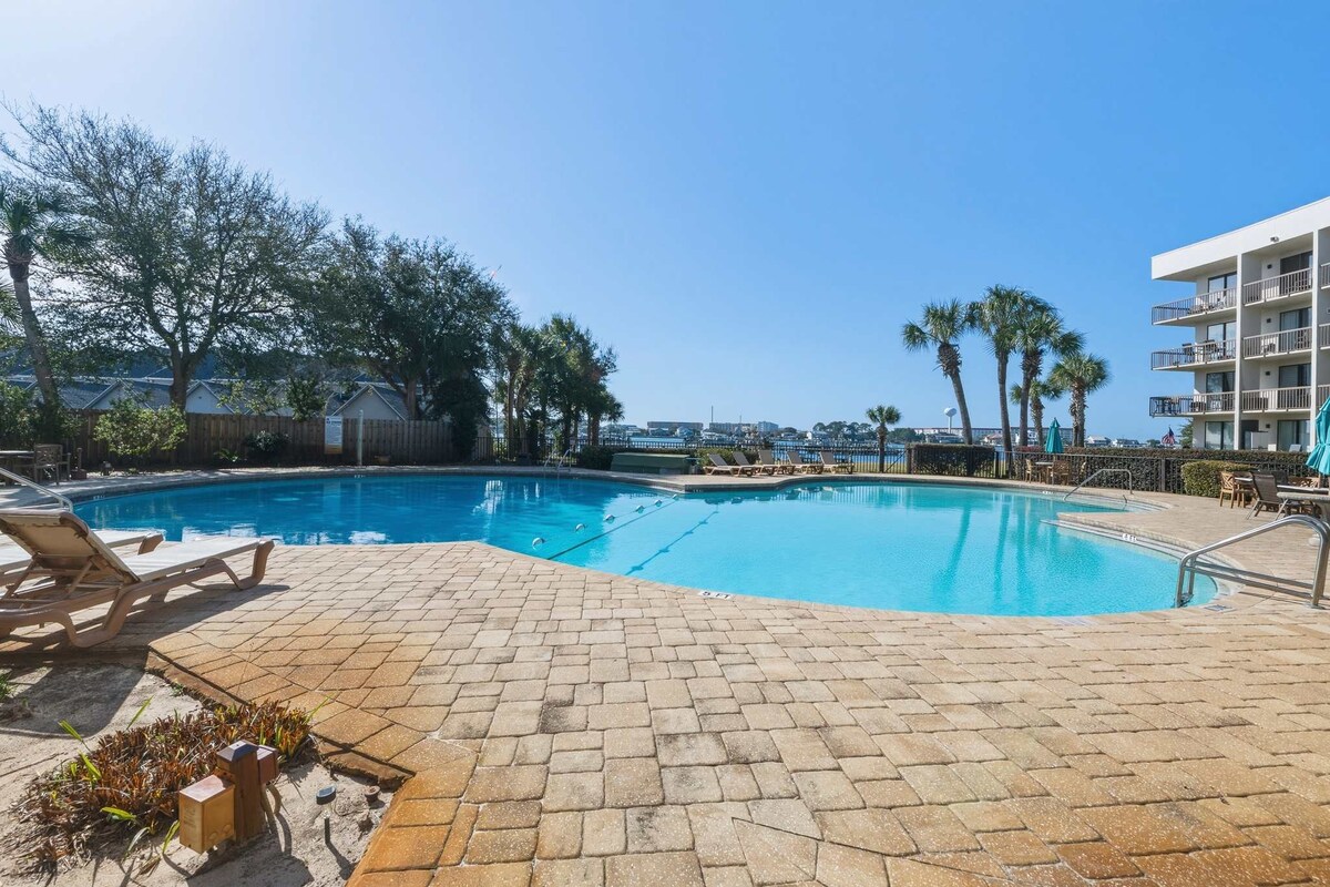 Enjoy breathtaking views of the Santa Rosa Sound and marina from your private top-floor balcony in this waterfront studio. Whether you're sipping coffee at sunrise or watching vibrant sunsets each evening, this spot delivers unforgettable costal charm in a quiet, peaceful setting. Perfect for couples or solo travelers, the studio features a full bath with tile shower, well-equipped kitchenette and sparkling pool. Gulf beaches are a just a short drive away. Free parking and easy self check-in.