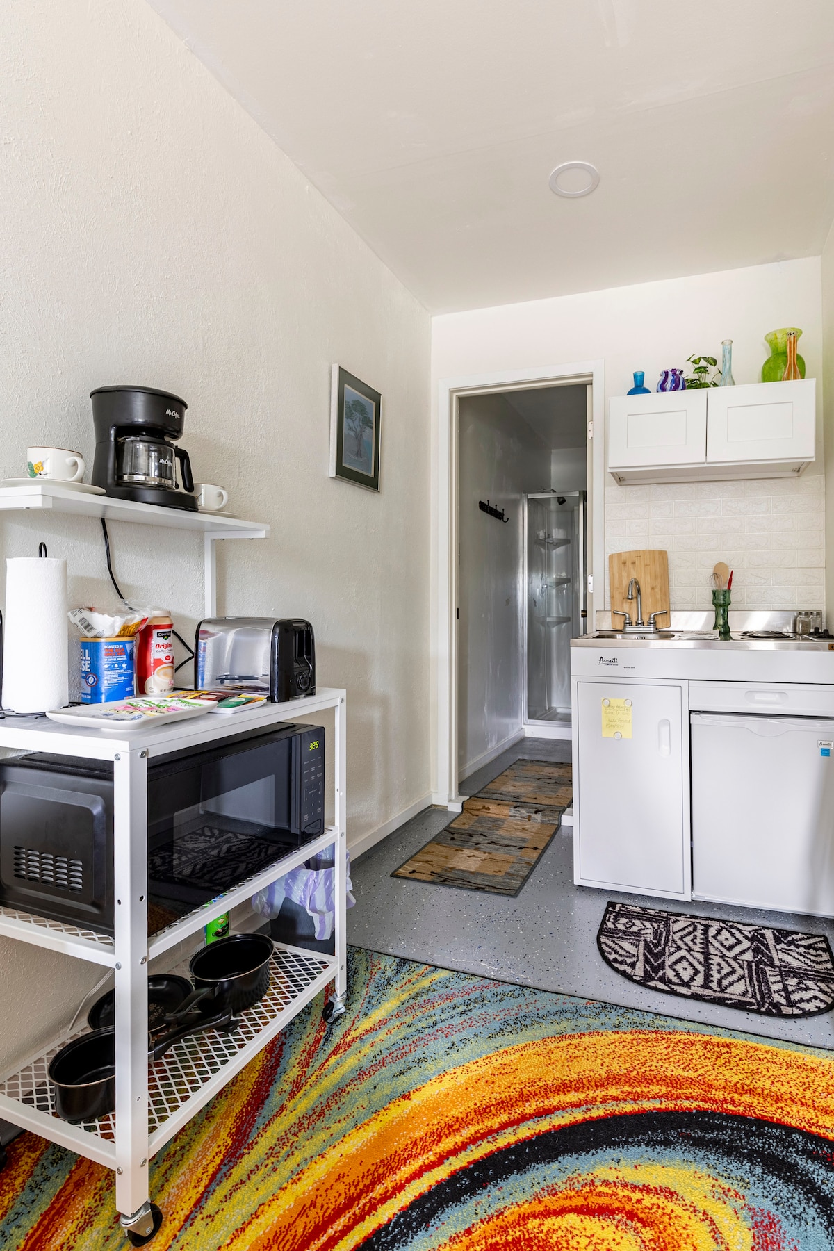 Y'all will love staying here! Fresh & light Studio apartment located in a great Neighborhood, Just eight Minutes from DFW Airport. Walking distance to HEB hospital (great for travelling nurses and Airline employees.. Covered patio & seasonal Pool with slide & diving board, plus a shallow end. Bath house w/shower. Kitchen has a Fridge, Microwave, Ninja Toaster/Air fryer, Coffee Maker, induction cooktop. Base rate is for up to 2 guests...Additional guests add $15 a day, Except 2 & under are free:)