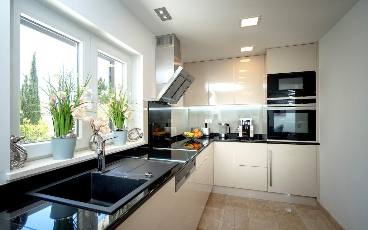 Bagong - bagong moderno at naka - istilong apartment na may gitnang kinalalagyan, malapit sa beach, at may magandang tanawin. Ang maluwag (90 m2) modernong flat na ito na binubuo ng dalawang silid - tulugan, dalawang banyo, isang malaking, open plan kitchen na may living room area, at ang terrace ay kumpleto sa kagamitan para sa isang napaka - komportableng pamamalagi. Ilang minutong lakad lang papunta sa pangunahing plaza pero matatagpuan pa rin sa isang tahimik na kapitbahayan.