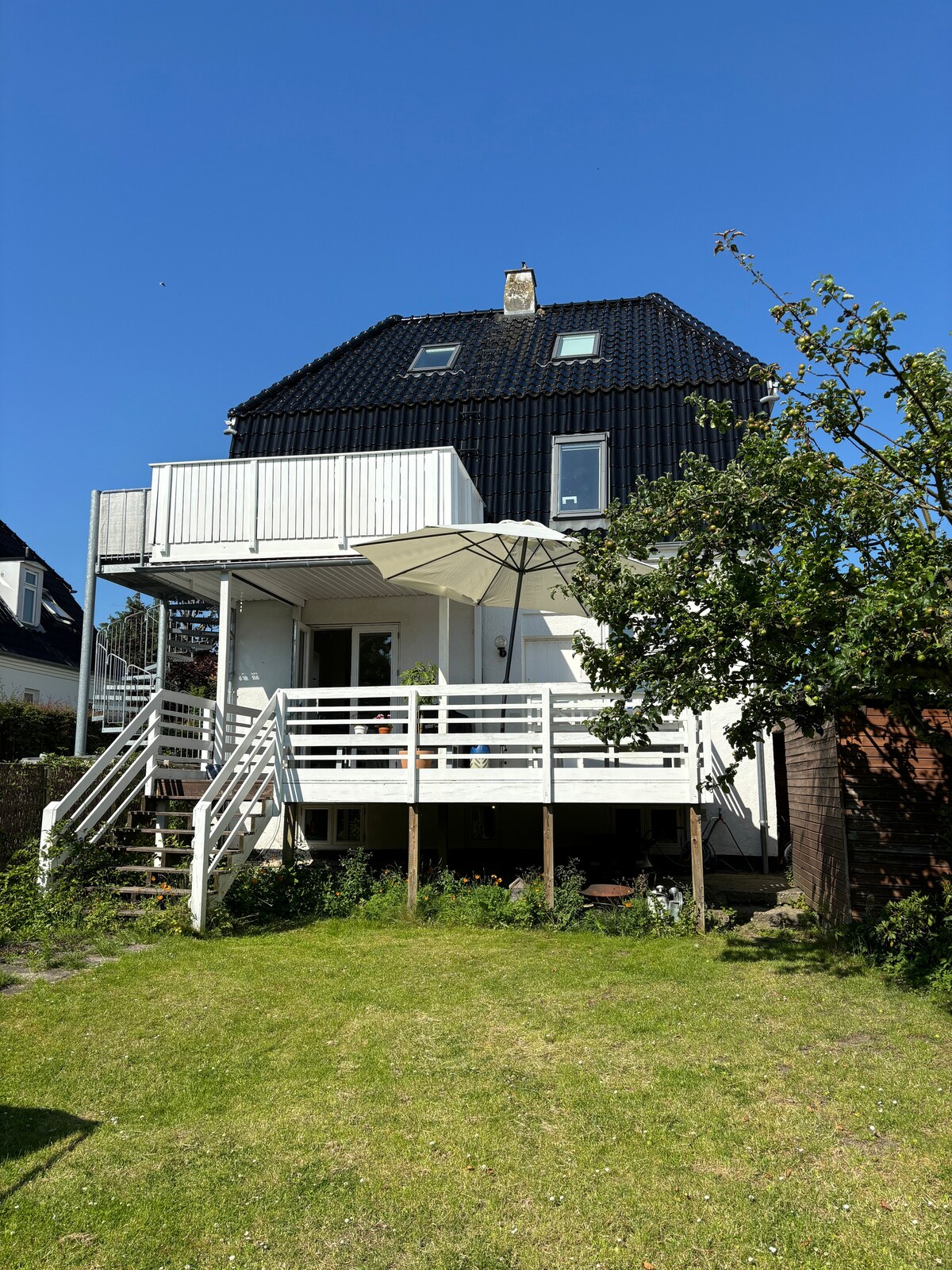 Cosy apartment on the first floor of our house close to Copenhagen. From the entrance, You have access to a nice bedroom with French Balcony and a double bed (140 cm. x 200 cm.). In addition, You can have two mattresses (70 cm. x 190 cm. each) and a baby bed. Also, enjoy the spacious kitchen-dining-living room. There are only 10 minutes by walk to the train station - then 12 minutes by train to Copenhagen Central Station. You can get to the beach by a 15 minutes walk.
