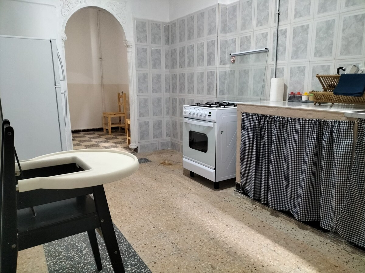 Modernong apartment na may kumpletong kagamitan; sa isang tahimik na lugar, ngunit napakalapit sa abalang kalye ng % {boldiếia. - parquet floor/Central Heating/Smart TV/AC/Libreng Wifi/Dressing/balkonahe para sa pagpapatayo ng mga Damit at washing machine/Iron/Microwave/Electric Kettle/Kitchenware/Mga Tuwalya/Mga Produkto sa Paglilinis - 24/7 na ahente na magagamit para sa iyong tulong sa panahon ng iyong pamamalagi sa Algeria