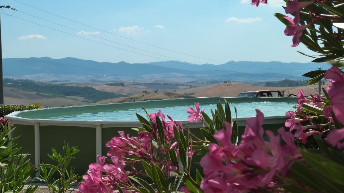 Tumakas sa aming tunay na tuluyan sa Tuscany, na matatagpuan sa 65 acre estate na may mahigit sa 1.000 puno ng oliba. Ang perpektong bakasyunan para sa mga pamilyang naghahanap ng tahimik na bakasyon. Matatagpuan sa gitna ng Tuscany - malapit sa San Gimignano at Volterra - nagtatampok ang aming kaakit - akit na bahay - bakasyunan ng dalawang magagandang silid - tulugan, na nag - aalok ng komportable at nakakaengganyong kapaligiran. Masiyahan sa mga kaaya - ayang araw sa pamamagitan ng pinaghahatiang swimming pool, na tinitingnan ang mga magagandang tanawin ng mga gumugulong na burol at mayabong na mga orchard ng oliba.