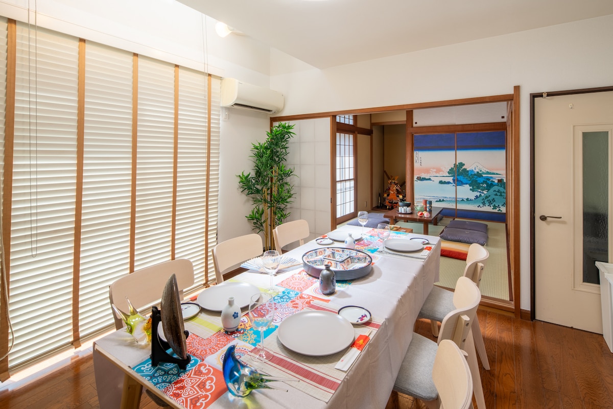 This is our family home. While we’re away traveling, we’d love for you to stay here and make it your own. Please come live in our family's precious home and enjoy local life. They've created a cozy space inspired by their adventures, with top-notch amenities like high-speed internet and a well-equipped kitchen. Situated in Ohanajaya, a vibrant neighborhood with easy access to Ueno and airports, it offers a convenient base for city exploration.