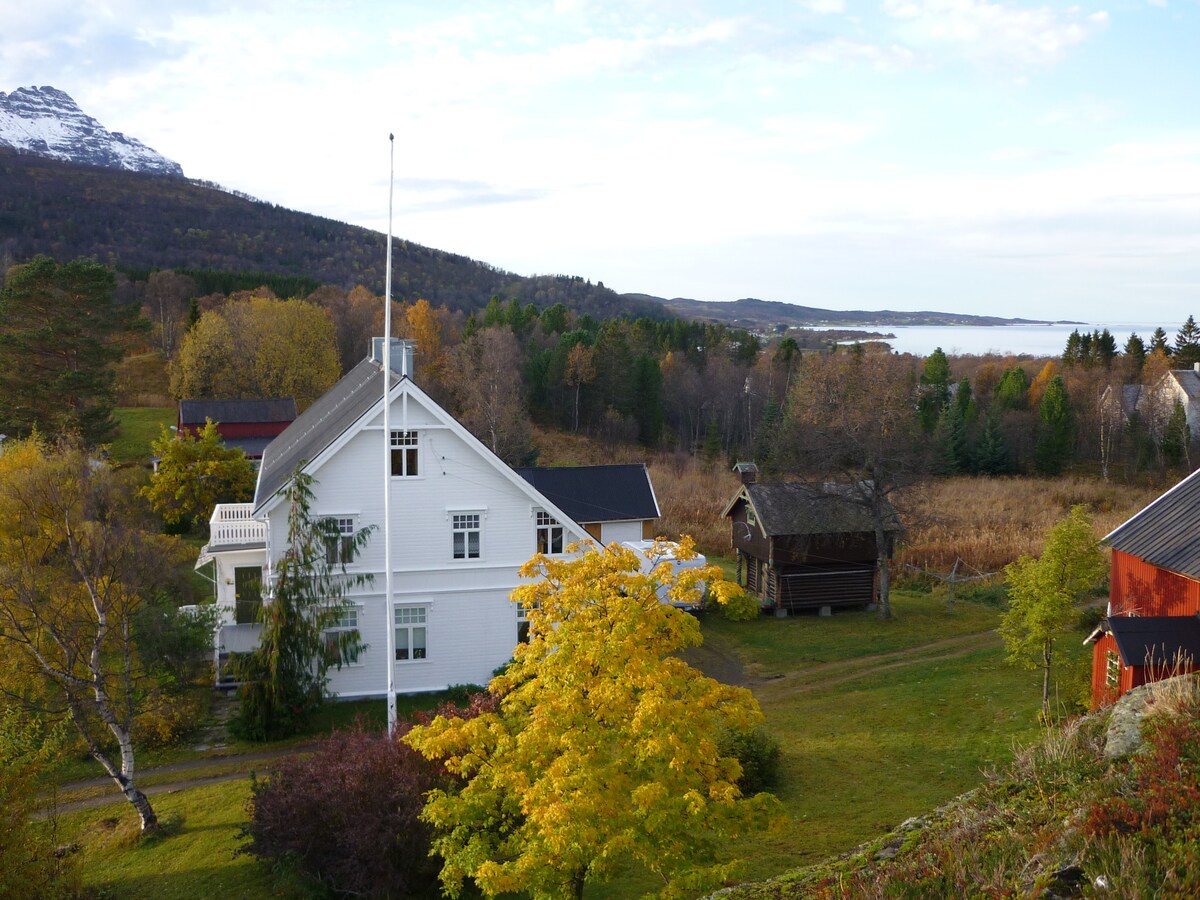 Apartment sa lumang bahay. Kumpleto ang kagamitan. Sala at kusina sa isa. TV, refrigerator/freezer, banyo na may bathtub, 2 silid-tulugan sa 2nd floor na may 4 na higaan at linen. Malapit sa isang malaking ilog na may magandang oportunidad para sa pangingisda. Magandang lugar para sa paglalakbay. Hindi pinapayagan ang paninigarilyo at pag-inom ng alak sa loob. Humigit-kumulang 2 km sa grocery store at fast boat access sa Engenes. Ang bangka ay papunta sa Harstad sa timog at Finnsnes at Tromsø sa hilaga.