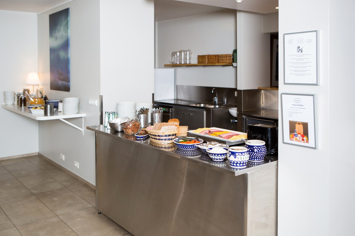 Matatagpuan kami sa lumang sentro ng lungsod, sa tapat ng kalye mula sa Hallgrim 's Church. Nag - aalok kami ng mga moderno at sariwang kuwartong may mga muwebles na gawa sa kahoy. Nagtatampok ang mga kuwartong may simpleng dekorasyon ng mga pinaghahatiang pasilidad sa banyo. Lahat ay may WiFi at may access sa isang pangkomunidad na kusina. Puwedeng bilhin ang wine, beer, at softdrinks. Libreng pribadong paradahan. 5 minutong lakad ang layo ng outdoor thermal pool.