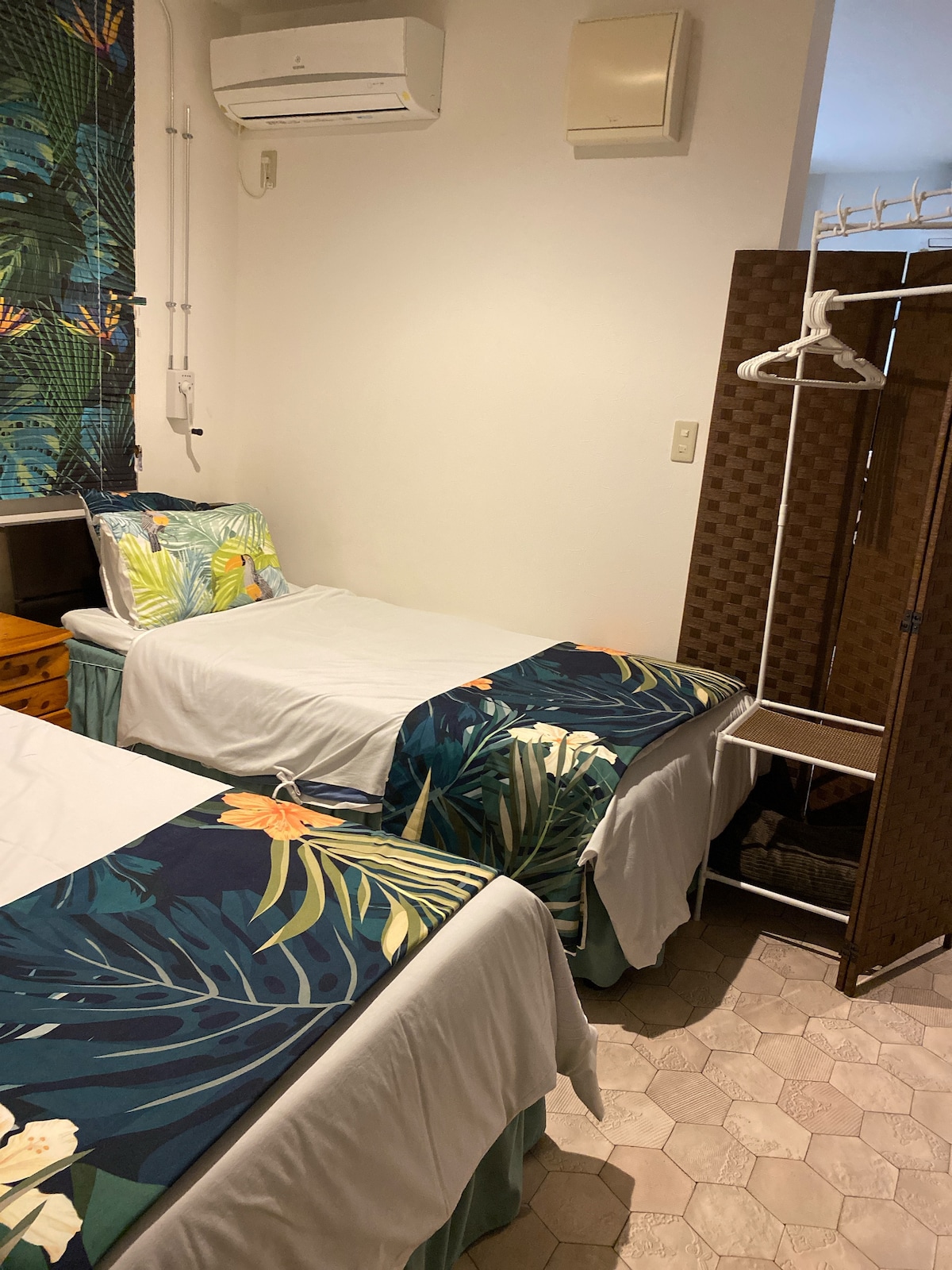 A 66 square meter condo with a panoramic ocean view. Can walk or take sightseeing cars to Aquarium and further to Emerald Beach through the park. 30-sec walk to a mall with Starbucks, etc., 3-min walk to the bus stop from Airport. 5-min walk to a Family Mart. 1km to a local beach. (Even shorter, if you use a short-cut) *We no longer provide seasonings. *The black color or th etiles in the bathroom is not a mold, but the joints of the tiles.