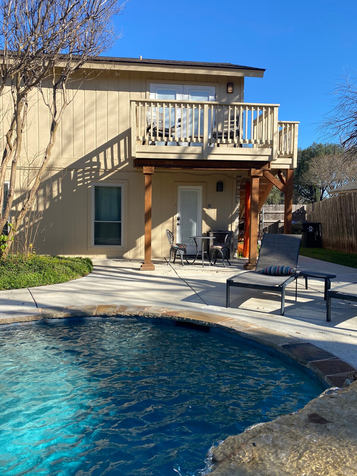 Makaranas ng mas mataas na relaxation sa pamamagitan ng Whitetail Rentals. Pinagsasama‑sama ng Whitetail Loft ang payapang kalikasan, piniling disenyo, at mga pinag‑isipang amenidad—kabilang ang pribadong hot tub, maestilong patyo, at access sa nakakamanghang pinaghahatiang waterfall pool. Magrelaks, magpahinga, at mag‑enjoy sa resort‑style na tuluyan na ilang minuto lang ang layo sa Austin. At kung hindi pa iyon sapat, sinasagot din namin ang mga bayarin ng bisita sa Airbnb, kaya hindi mo na kailangang bayaran iyon!!!