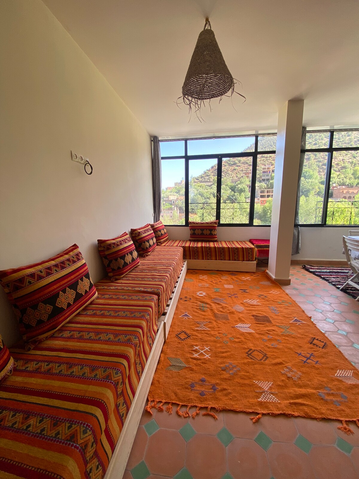 Maligayang pagdating sa iyong mapayapang bakasyunan sa bundok sa magandang Ourika Valley, isang maikling biyahe lang mula sa Marrakech. Pinagsasama ng komportableng apartment na ito ang tradisyonal na kaakit - akit na Amazigh na nagtatampok ng dekorasyong gawa sa kamay at mga nakamamanghang tanawin. • Malalaking panoramic na bintana na may mga tanawin ng bundok at hardin • Tradisyonal na upuan sa Amazigh at mga alpombra na yari sa kamay • Lugar na kainan na may rustic touch • Fireplace para sa mga komportableng gabi Komportableng nagho - host 🛏️ ang apartment ng hanggang 4 na bisita at perpekto ito para sa mga mag - asawa, pamilya, o kaibigan.