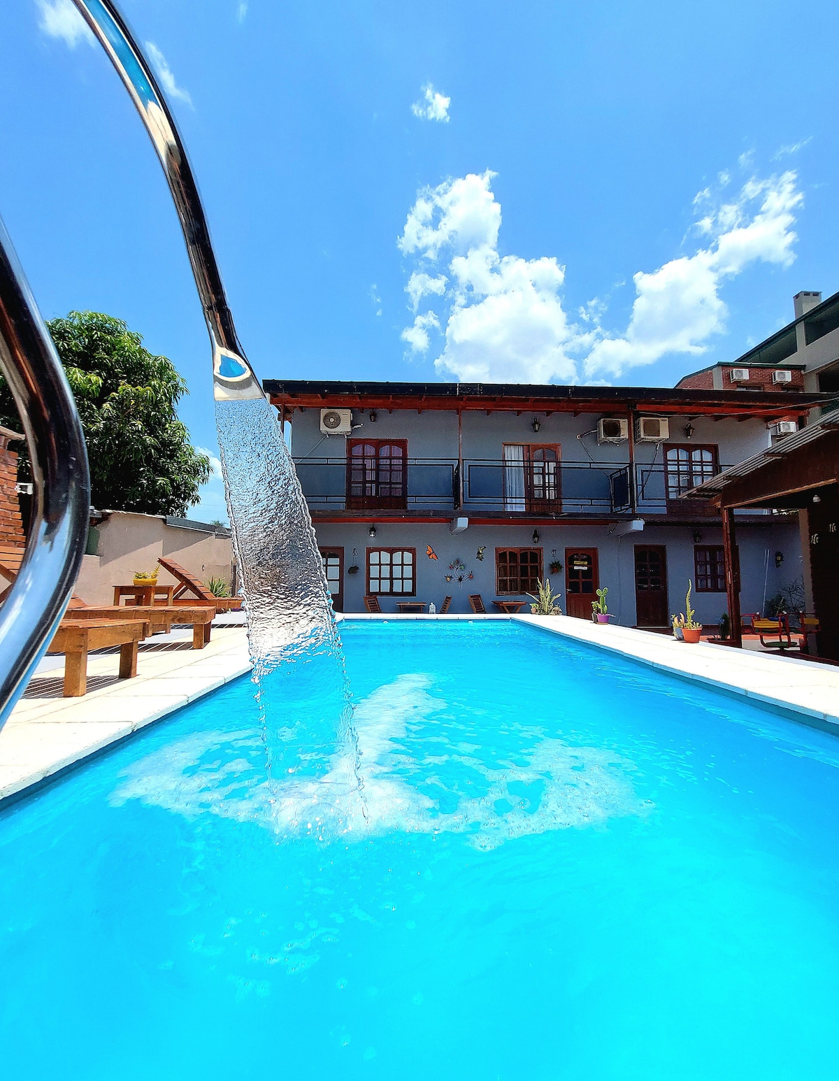 Relájate en este alojamiento único y tranquilo, próximo al hito tres fronteras y costanera. El Appart posee una terraza y piscina con vistas a Paraguay y Brasil. Ambiente ideal para parejas y amigos, cuenta con dos parrillas , patio interno , zona de estar, terraza y piscina.