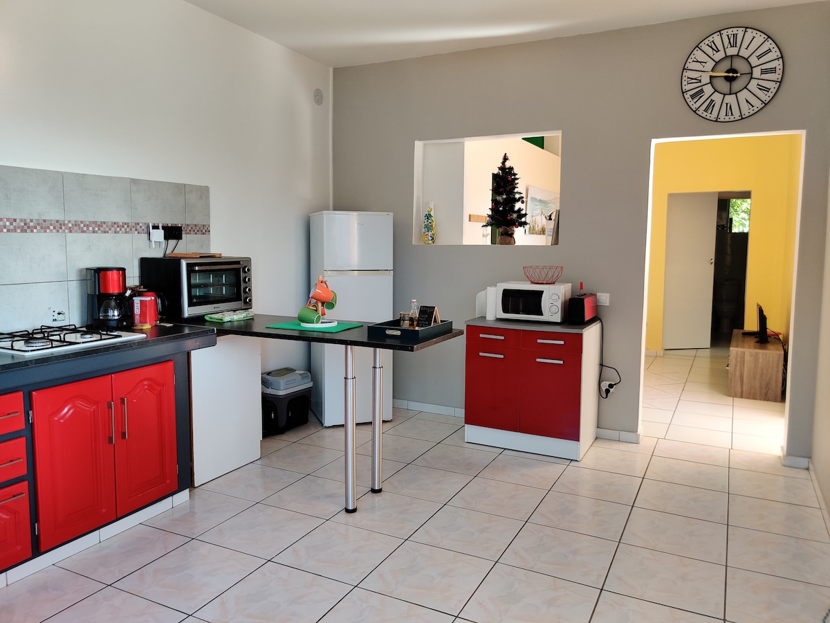 Magandang kaakit - akit na bungalow na may tanawin ng bay des Saintes kabilang ang isang naka - air condition na kuwarto na may 1 king size na kama o 2 kama sa 90, TV, shower room, sala, kusina na nilagyan ng washing machine at dishwasher, coffee machine, kettle, toaster, wifi, BB bed na may mosquito net, napakagandang garden terrace. Paradahan na may socket para maningil ng kotse.
