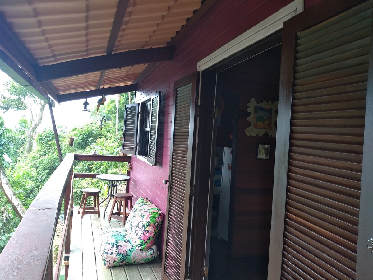 Treetop Chalet provides elegant and traditional accommodation, situated within beautiful Atlantic rainforest in Araçatiba, Ilha Grande. This private and secluded location is 150m from the nearest beach (Praia da Cachoeira). It is completely self-contained, with full kitchen, private bathroom and a deck with breathtaking view of the trees towards the sea. NOTE: This property (including the chalet and main house) has just been completely redecorated.