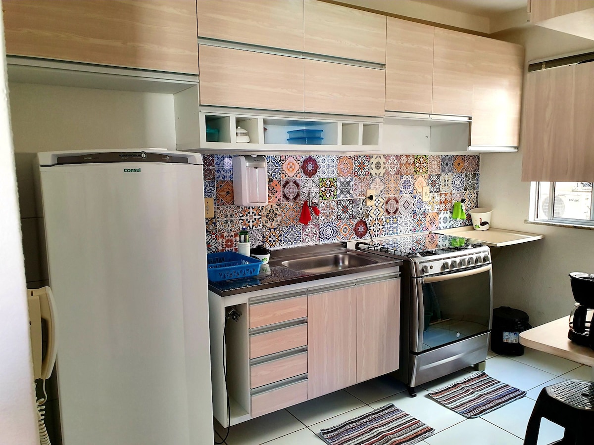 Bago at komportableng Apartamento,gawin ang iyong sarili sa bahay. 200m mula sa beach. 2/4 na may 1 suite Silid - tulugan 1, double bed Kuwarto 2 na may Triliche na 1 double bed at 2 single bed Social bathroom na may hairdryer Nag - aalok kami ng bakal, kumpletong kusina para sa almusal, tanghalian o Hapunan. Blender Toaster Geladeira Air Fryer Induction Cooktop