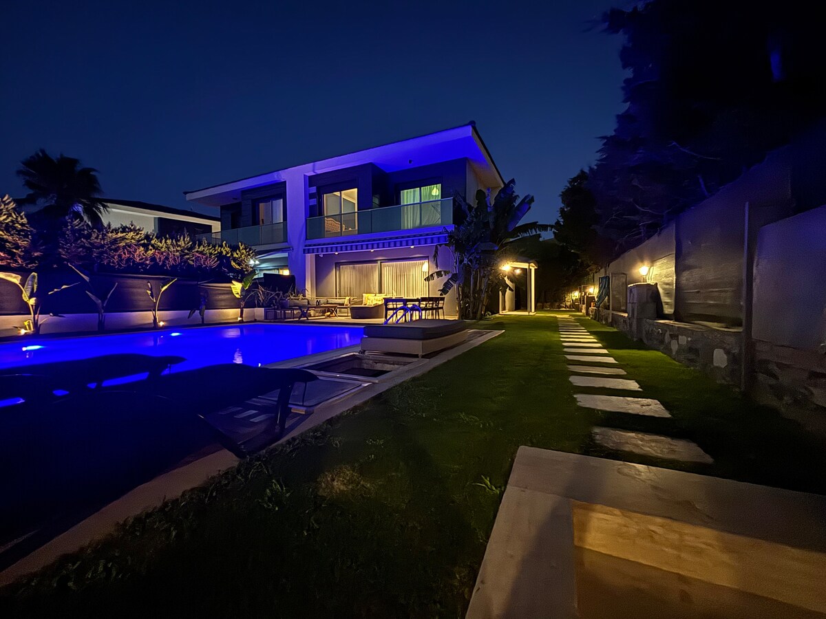 Villa sa İzmir Çesme na may espesyal na hot swimming pool hanggang Disyembre, malaking jacuzzi na may 4 na tao, sauna, gym, fireplace na may muwebles, 900 m2 na hardin, 5 silid - tulugan, 7 banyo. Grupo ng pamilya, grupo ng mga batang babae o lalaki lang Ang Cesme Villa ay may sarili nitong heated pool, 900m2 garden, 4 - person jacuzzi,sauna,sports hall,fireplace, 5 silid - tulugan, shower - tualet air conditioning sa bawat kuwarto, underfloor heating. Zero five zero seven three three five one nine eight one only family girls group or boys group. Hindi ito ibinibigay sa mga hindi kasal na grupo ng mga kalalakihan at kababaihan dahil may alituntunin sa site